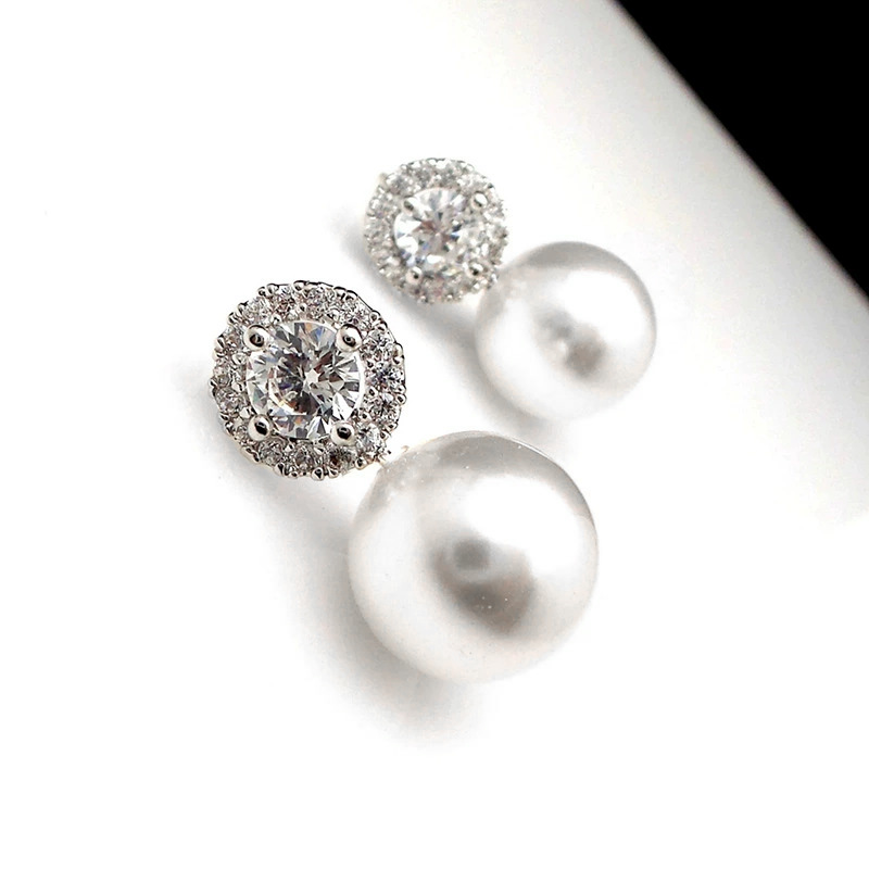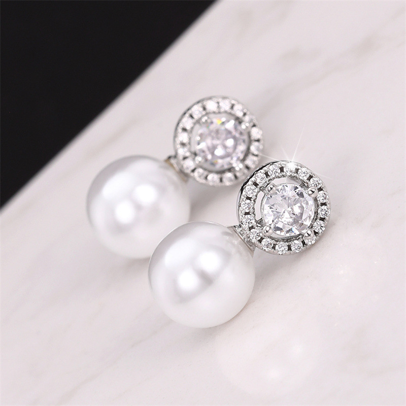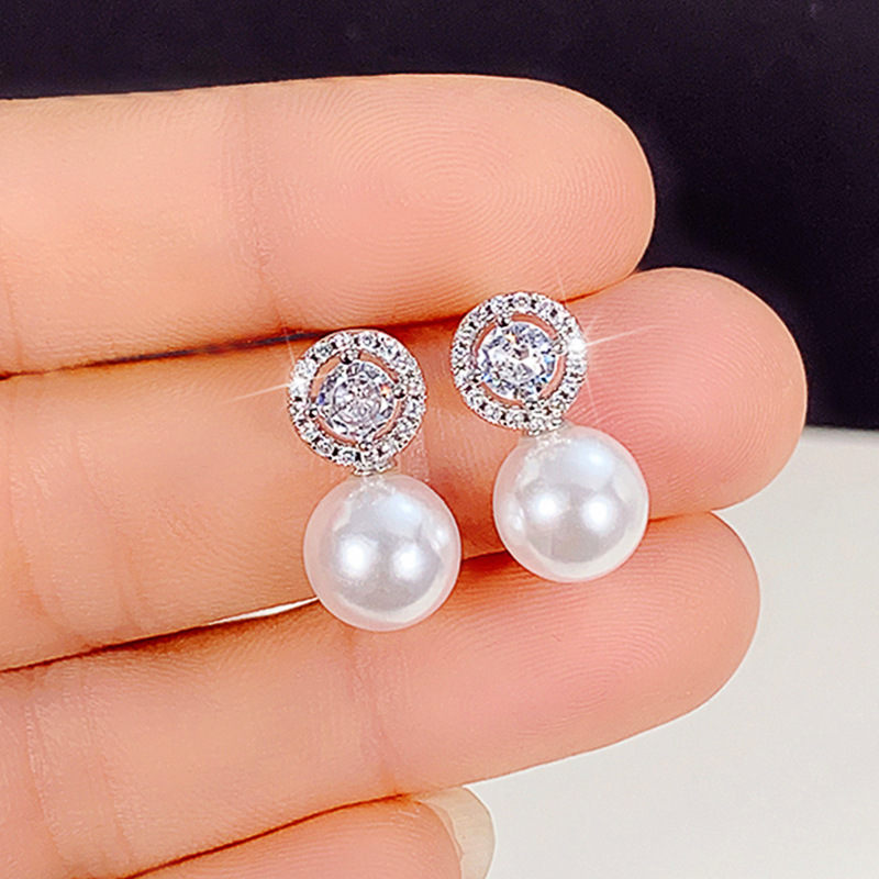 Korean light luxury micro-inlaid zircon pearl earrings niche sweet temperament earrings exquisite small earrings