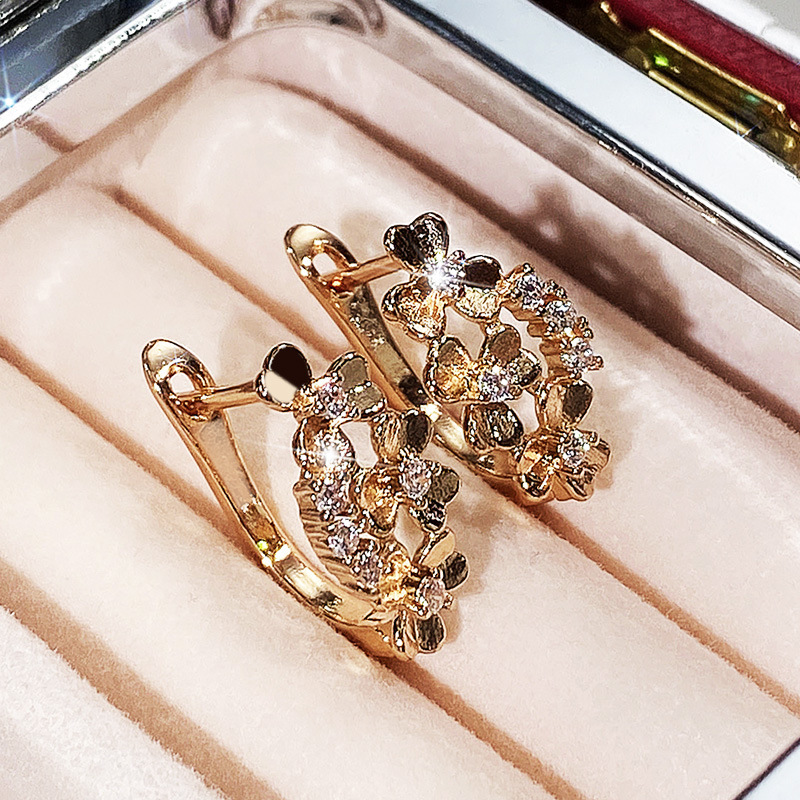 Korean metal flower earrings retro floral all-match women's earrings personality face slimming earrings