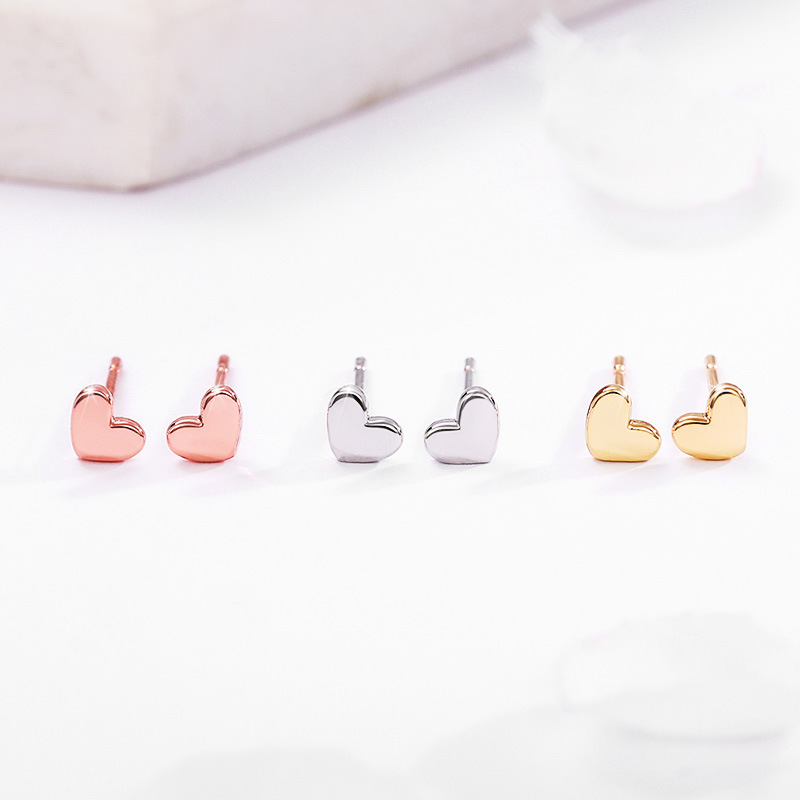 Korean minimalist style earrings sweet small mini glossy heart-shaped earrings for girls girly student earrings