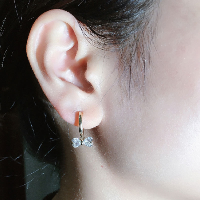 Korean style all-match inlaid zircon temperament earrings sweet bow drop earrings fashionable women's earrings