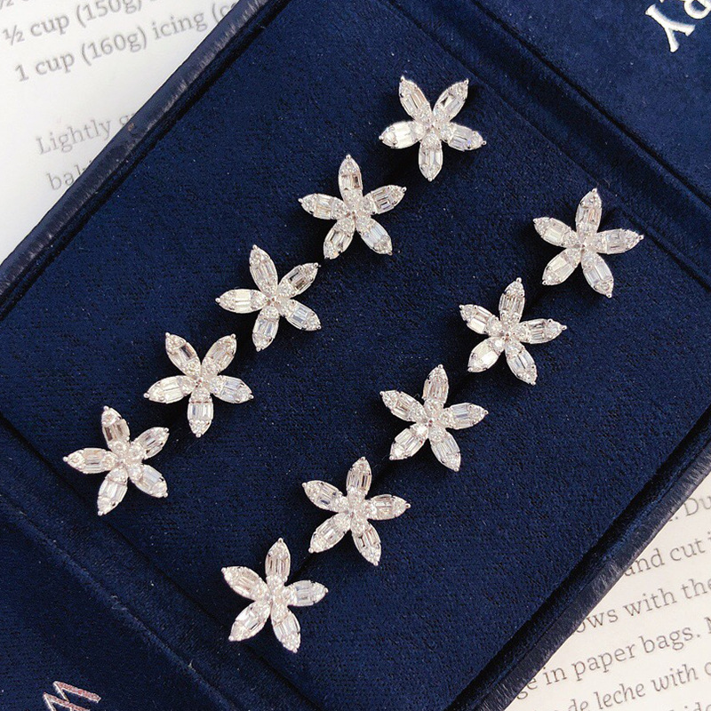 Korean style exquisite flower windmill full diamond earrings simple temperament versatile earrings for women