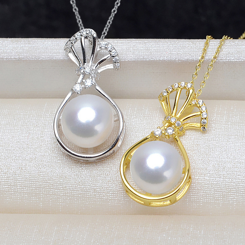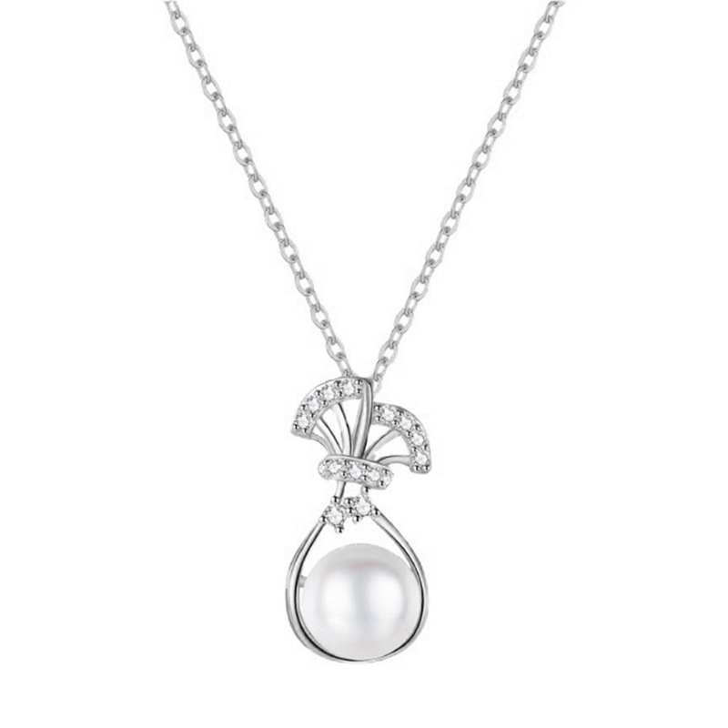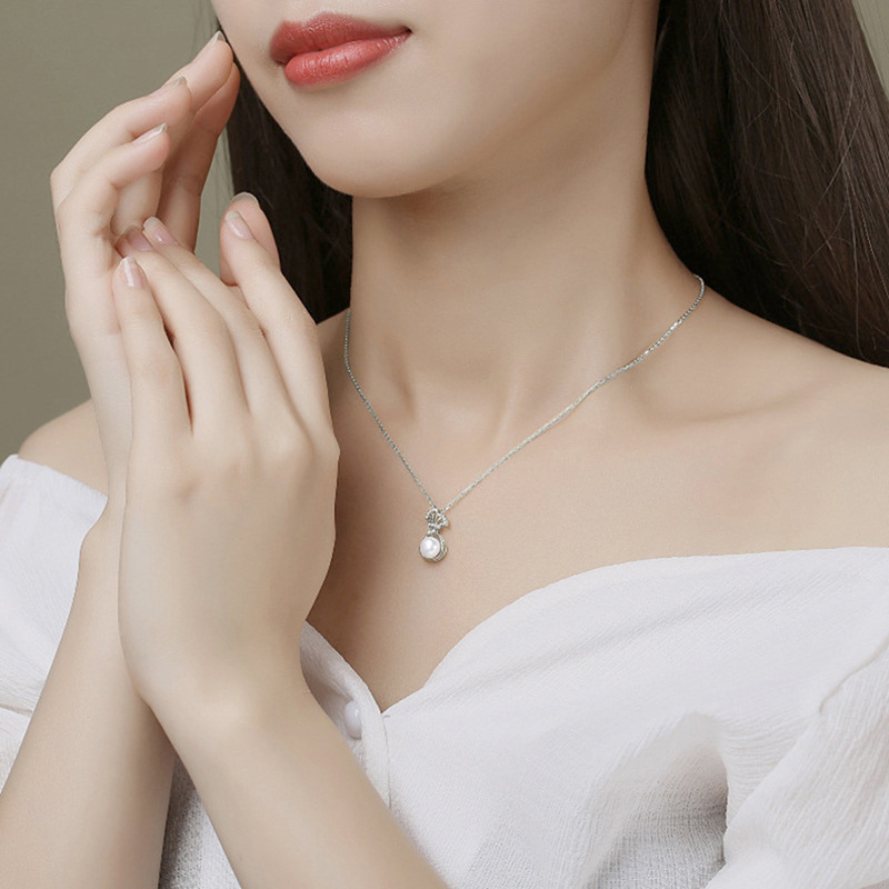 Korean style hot selling necklace for women, micro inlaid zircon lucky bag design necklace, imitation pearl exquisite jewelry