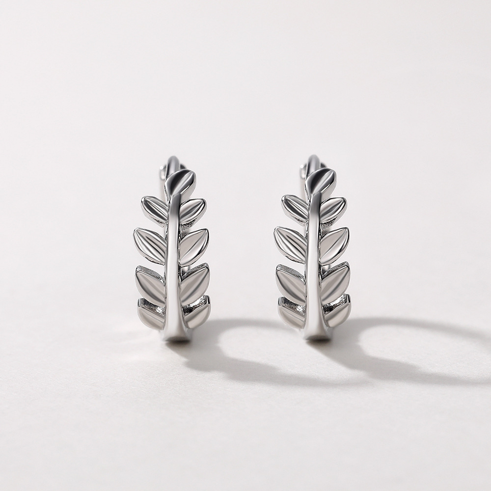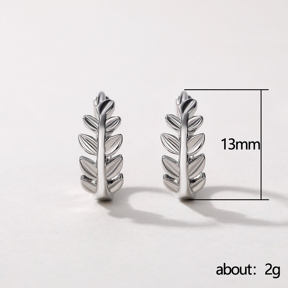 Korean style Korean literary and artistic fresh leaf earrings olive leaf olive branch earrings copper plated white gold earrings