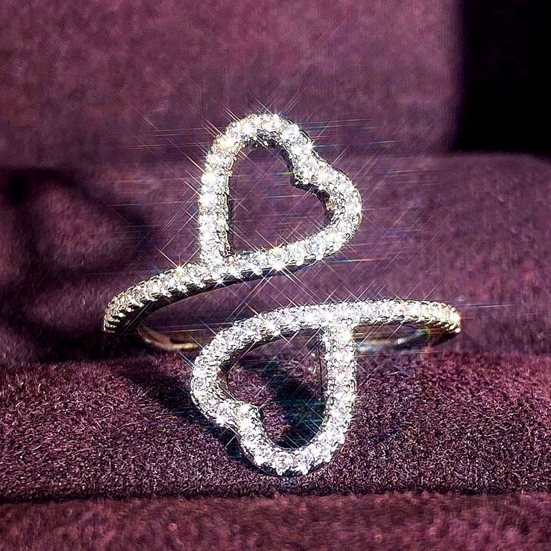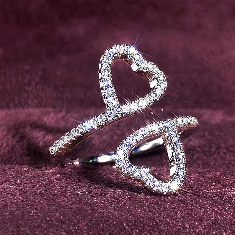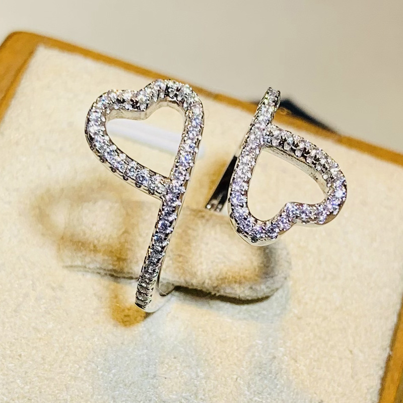 Korean style lady love heart-shaped open ring micro-inlaid zircon fashion ring sweet and cute ring