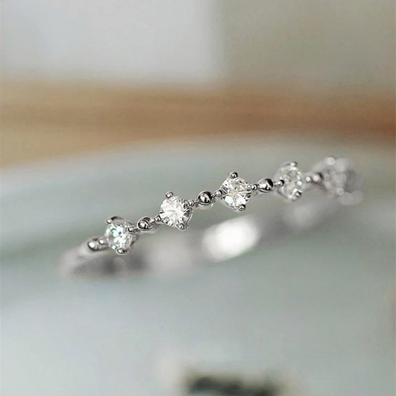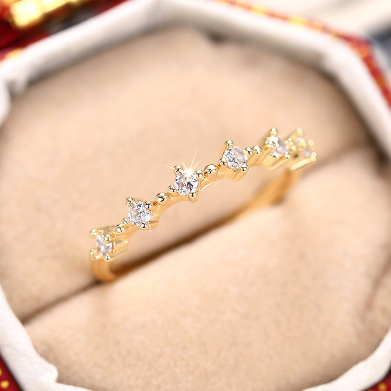 Korean style light luxury stacking index finger ring style fashionable all-match ring row diamond design simple women's ring