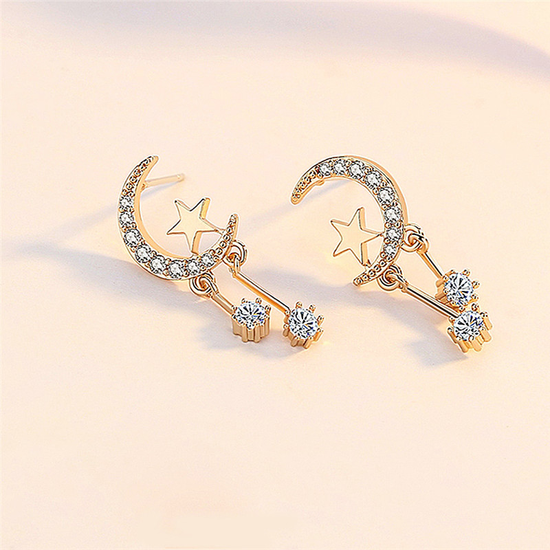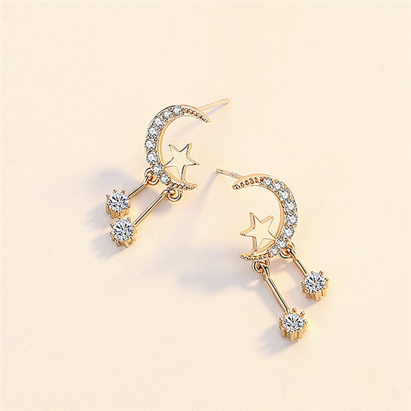 Korean style moon zircon earrings sweet star tassel earrings make your face look thinner