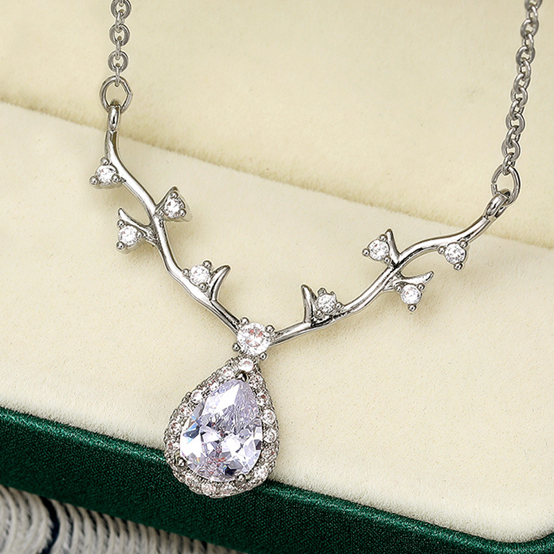 Korean style necklace for women, short deer antler diamond necklace, simple clavicle necklace for women