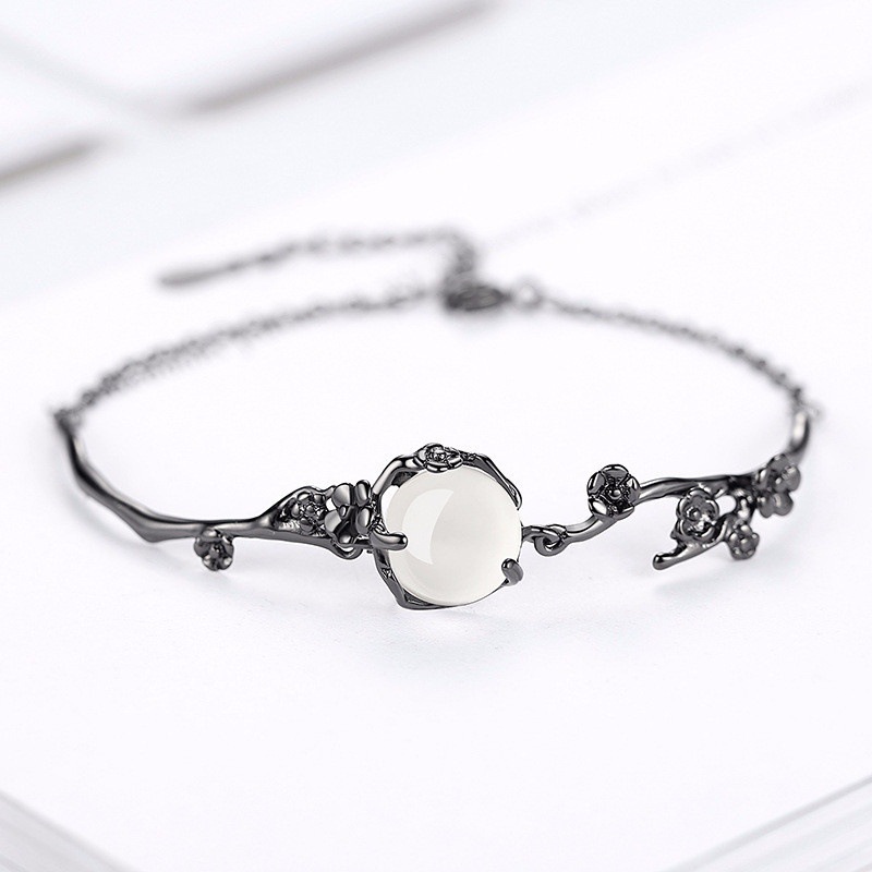 Korean style new creative flower bracelet women's jewelry art peach flower artificial white chalcedony hand jewelry wholesale