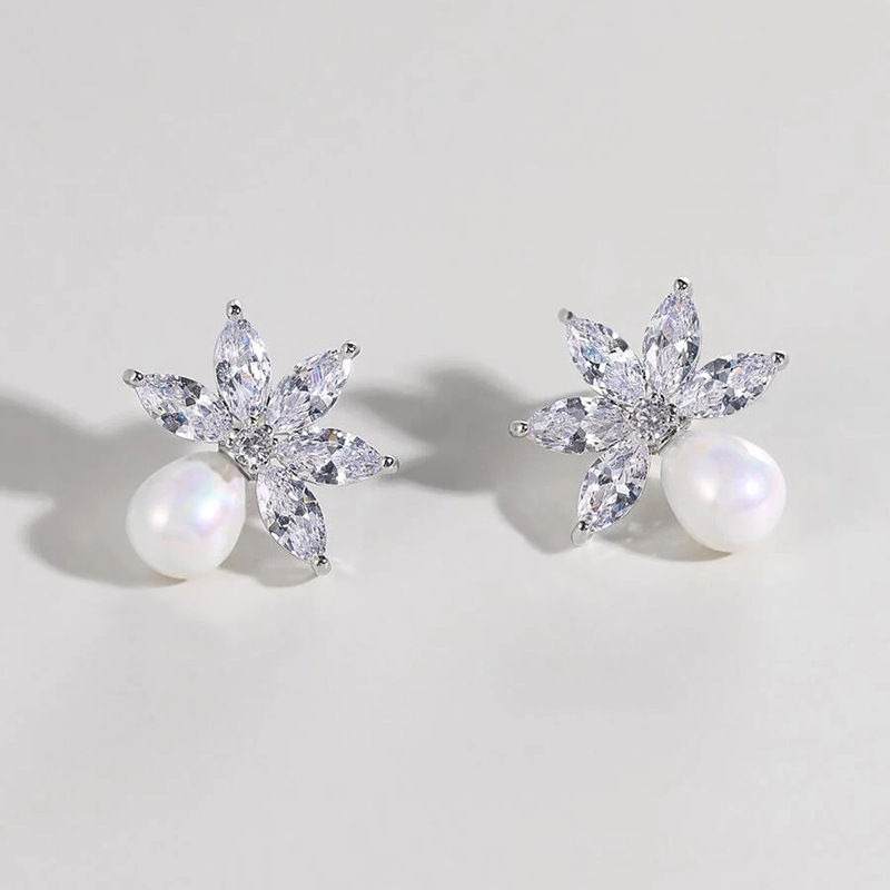 Korean style new horse eye earrings imitation pearl flower jewelry light luxury style high-end exquisite jewelry