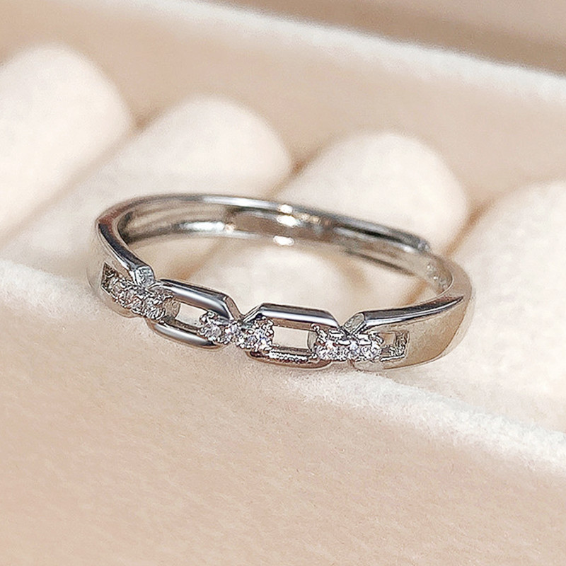 Korean style new love braided diamond zircon ring temperament hollow adjustable couple ring
