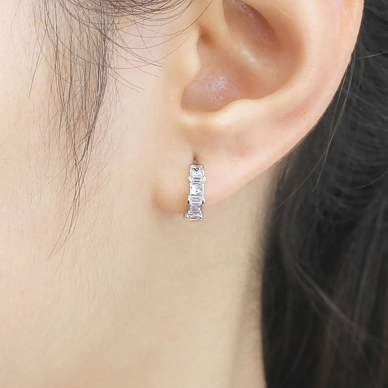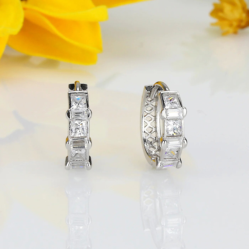 Korean style new micro-inlaid earrings simple commuter earrings exquisite diamond quadrilateral female earrings