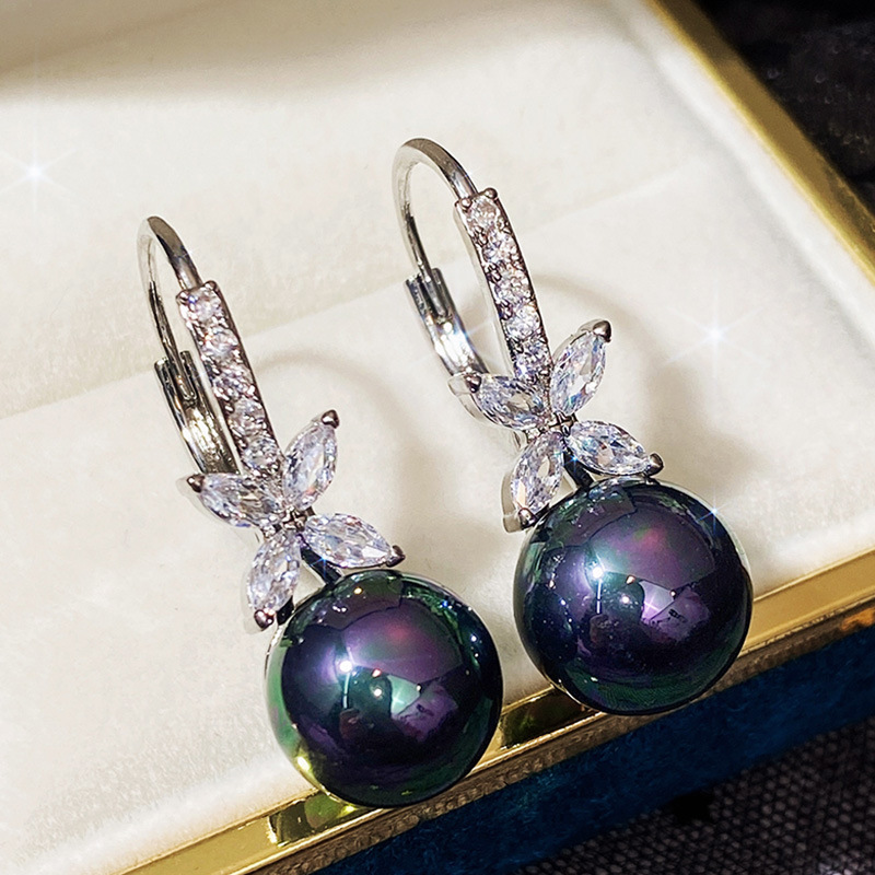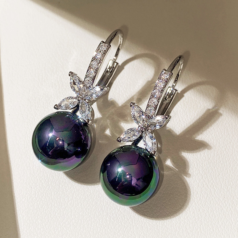 Korean style new retro imitation pearl flower earrings micro inlaid zircon temperament earrings