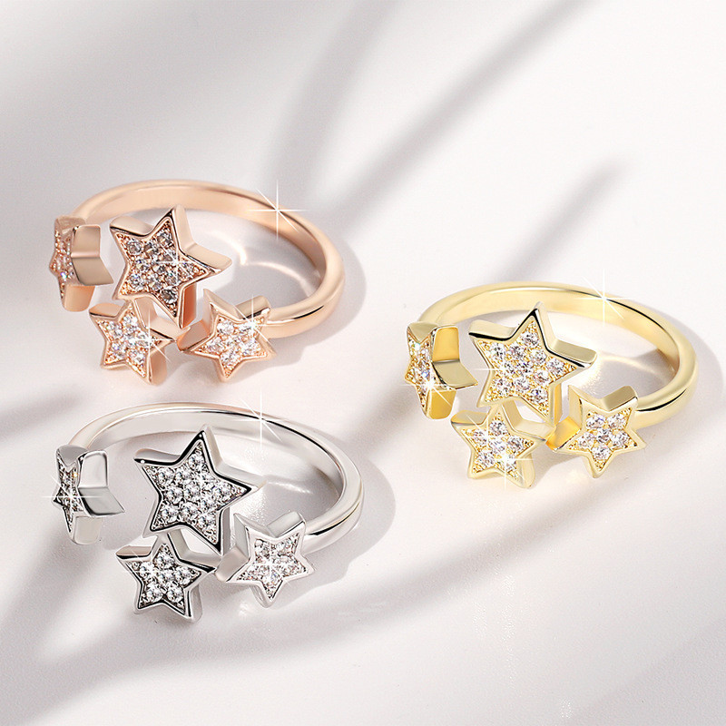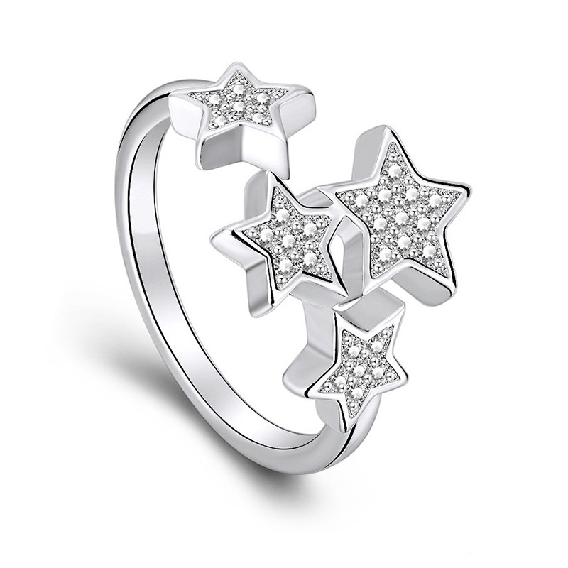 Korean style new star ring sweet full diamond starry sky open five-pointed star ring student jewelry