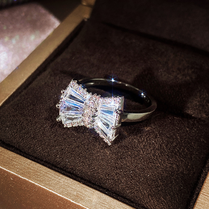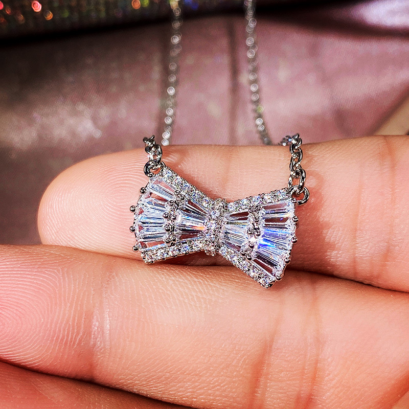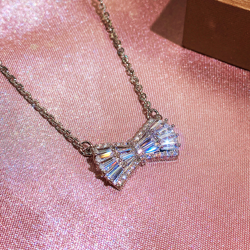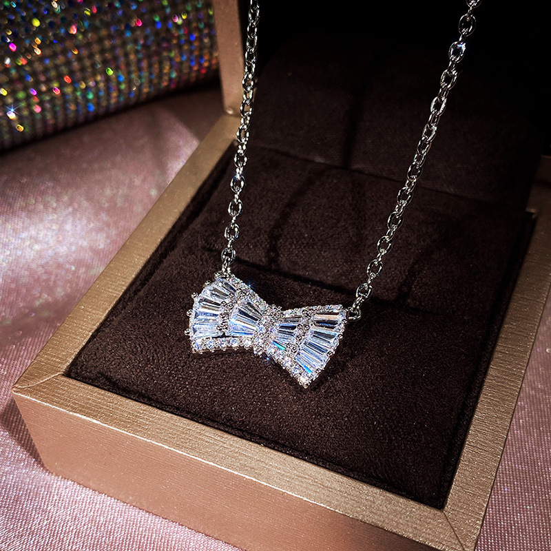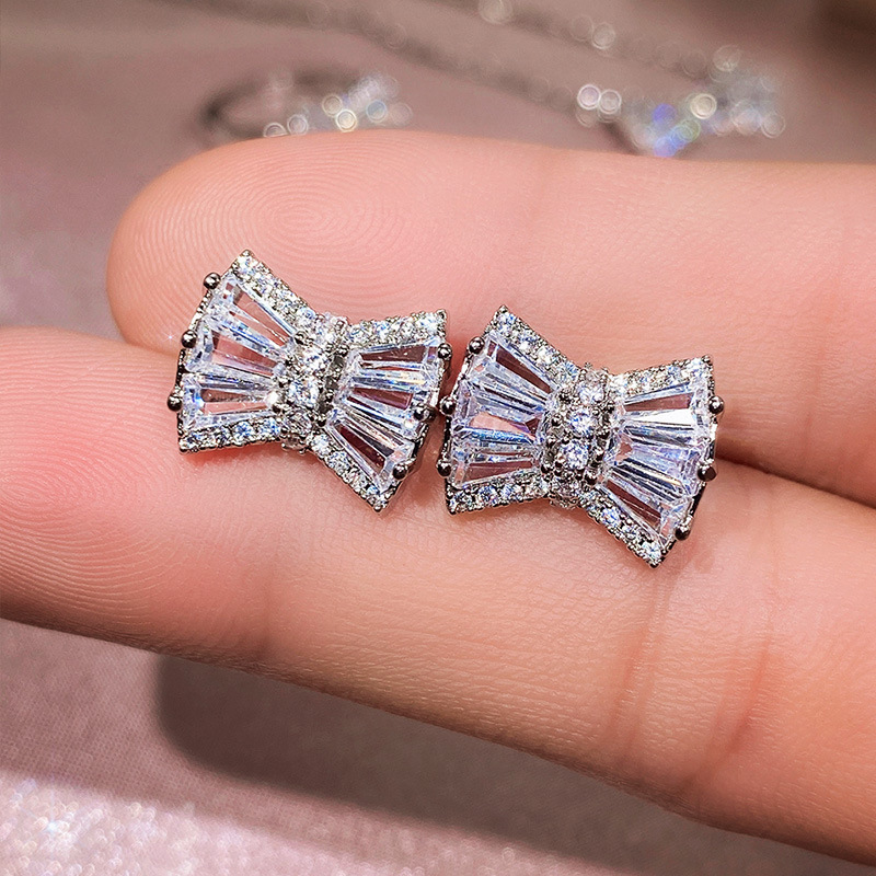 Korean style simple bow jewelry three-piece set platinum-plated zircon set fashionable women's accessories wholesale