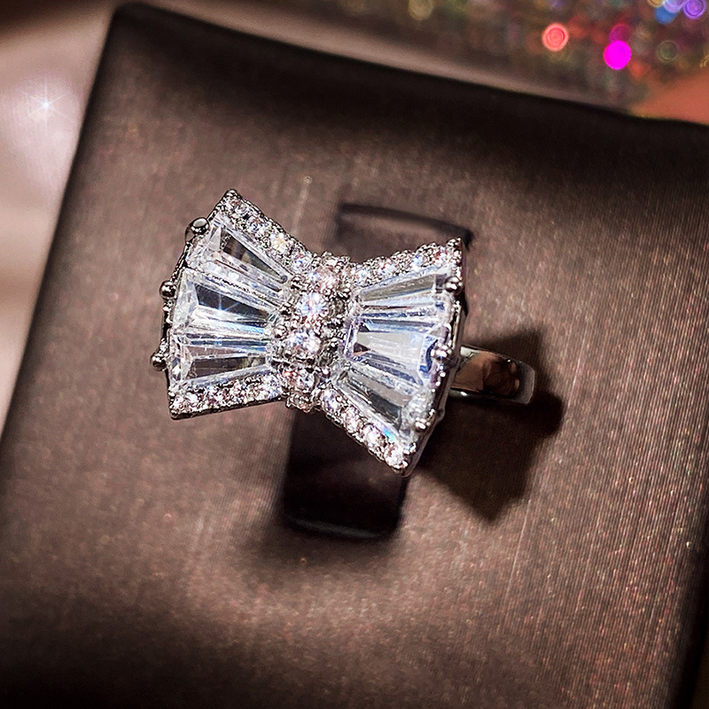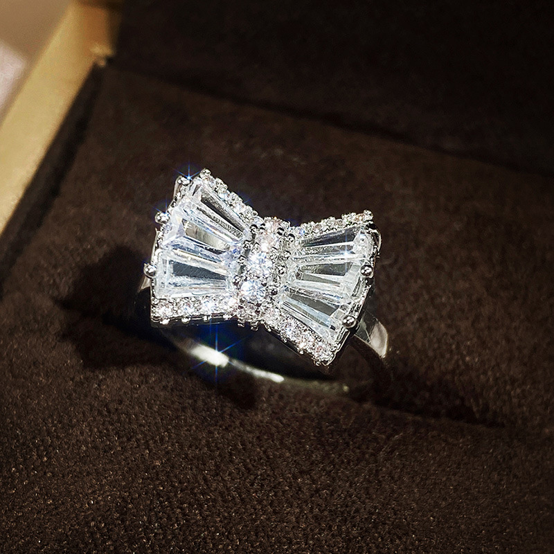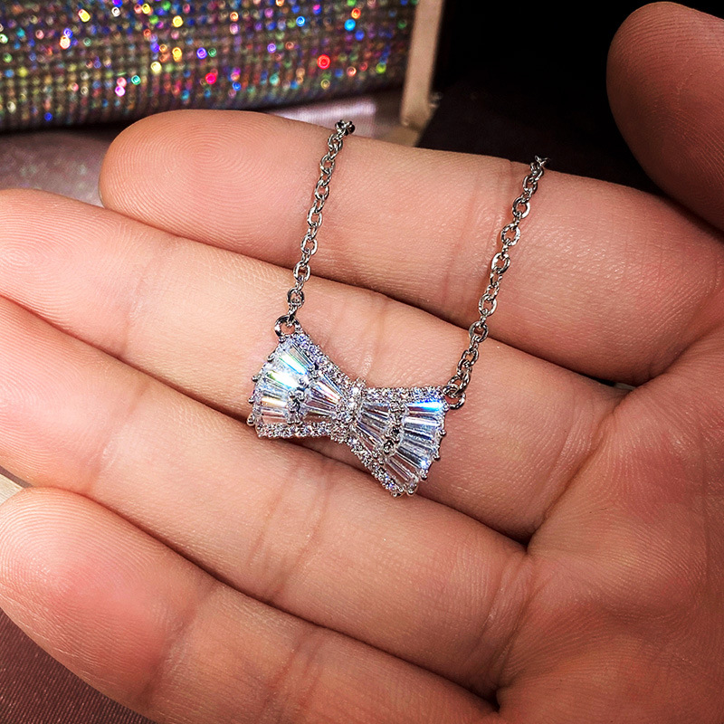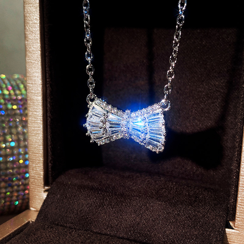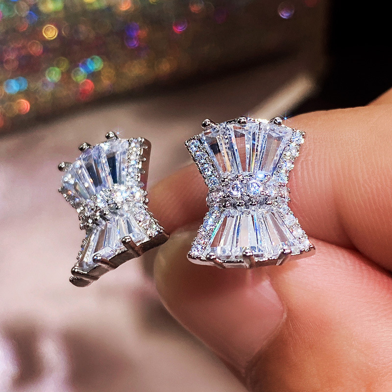 Korean style simple bow jewelry three-piece set platinum-plated zircon set fashionable women's accessories wholesale