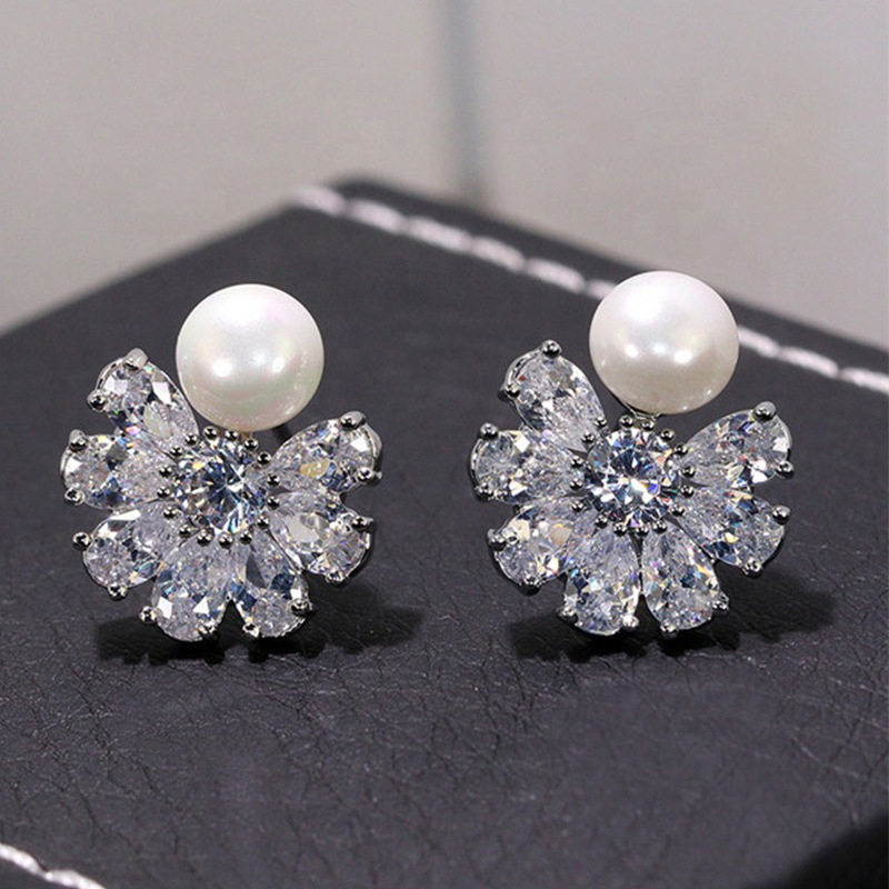 Korean style simple new earrings exquisite snowflake zircon imitation pearl earrings high-end lady temperament earrings