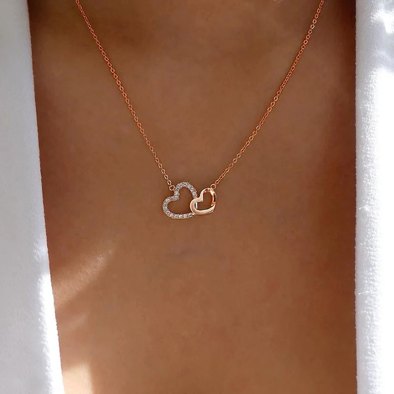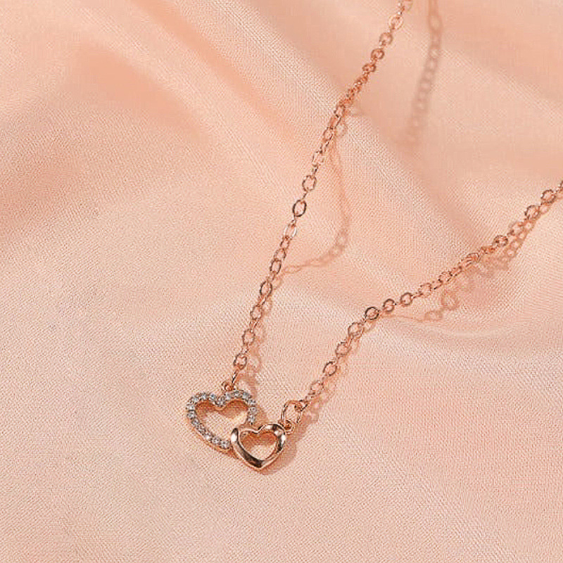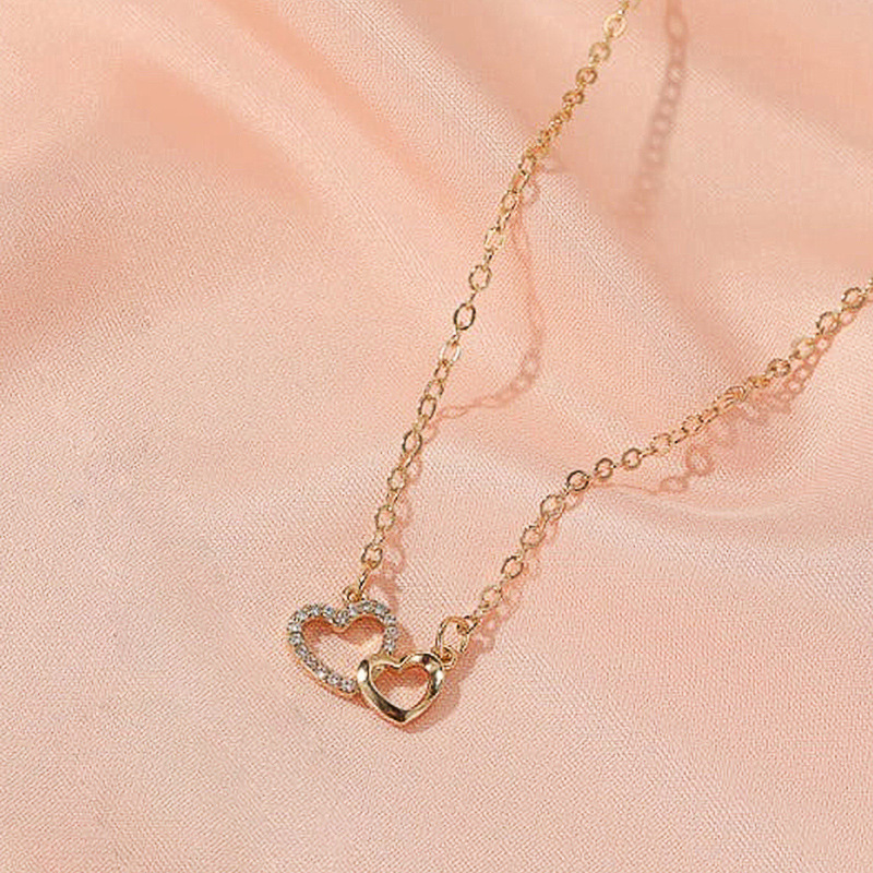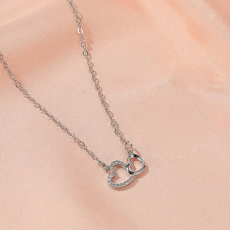Korean style simple versatile love necklace Internet celebrity heart-shaped sweet necklace hollow double heart romantic necklace for women