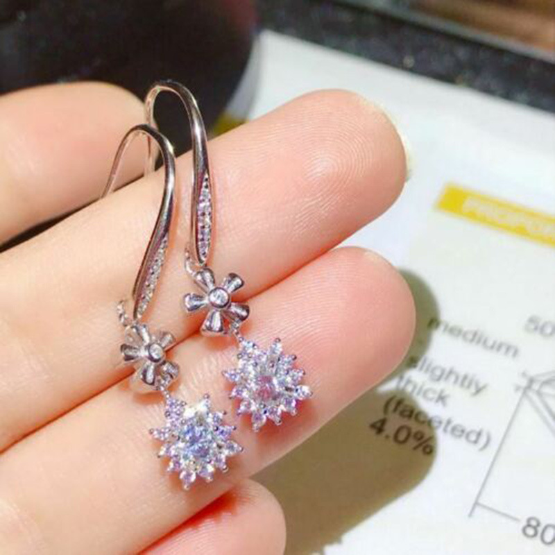 Korean style small fresh flower pendant earrings simple temperament zircon earrings all-match birthday gift earrings