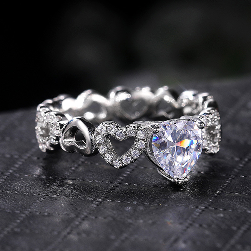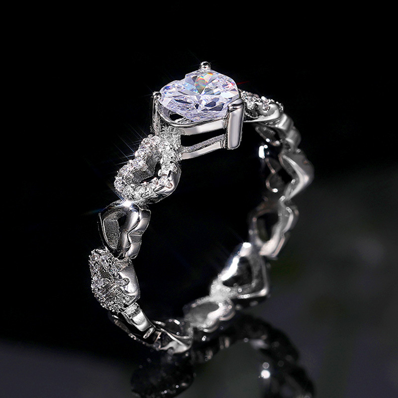 Korean style small fresh hand jewelry simple fashion heart-to-heart zircon ring female Valentine's Day gift ring