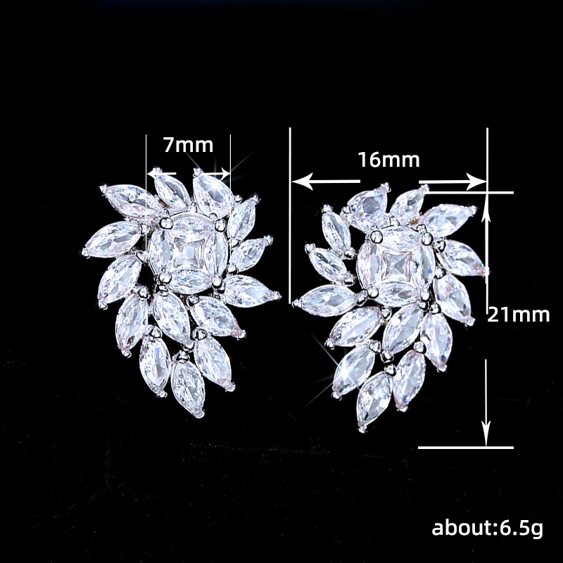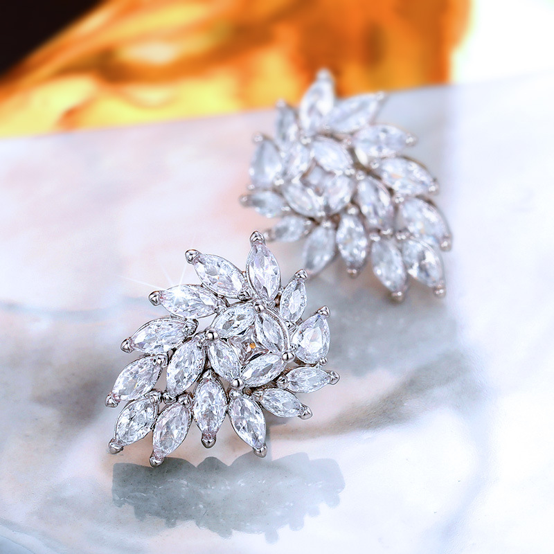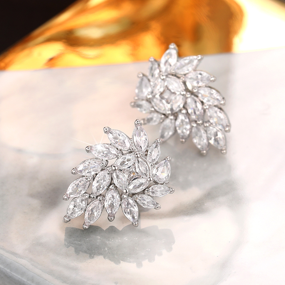 Korean style temperament net red earrings simple leaves and flowers horse eye zircon earrings flower petals earrings for women