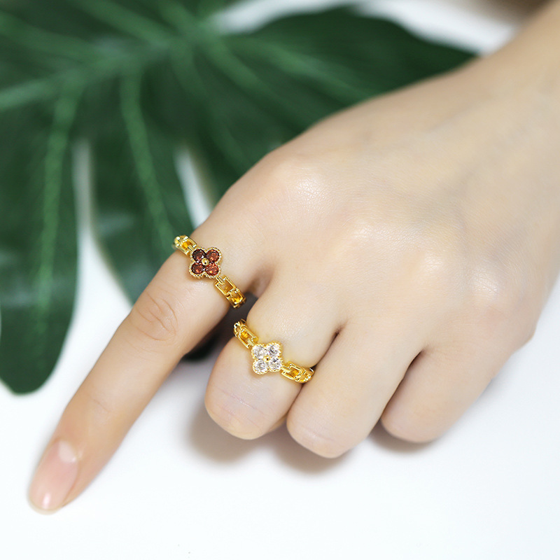 Korean sweet exquisite inlaid zircon ring small fresh flower opening adjustable index finger ring ring female rik30