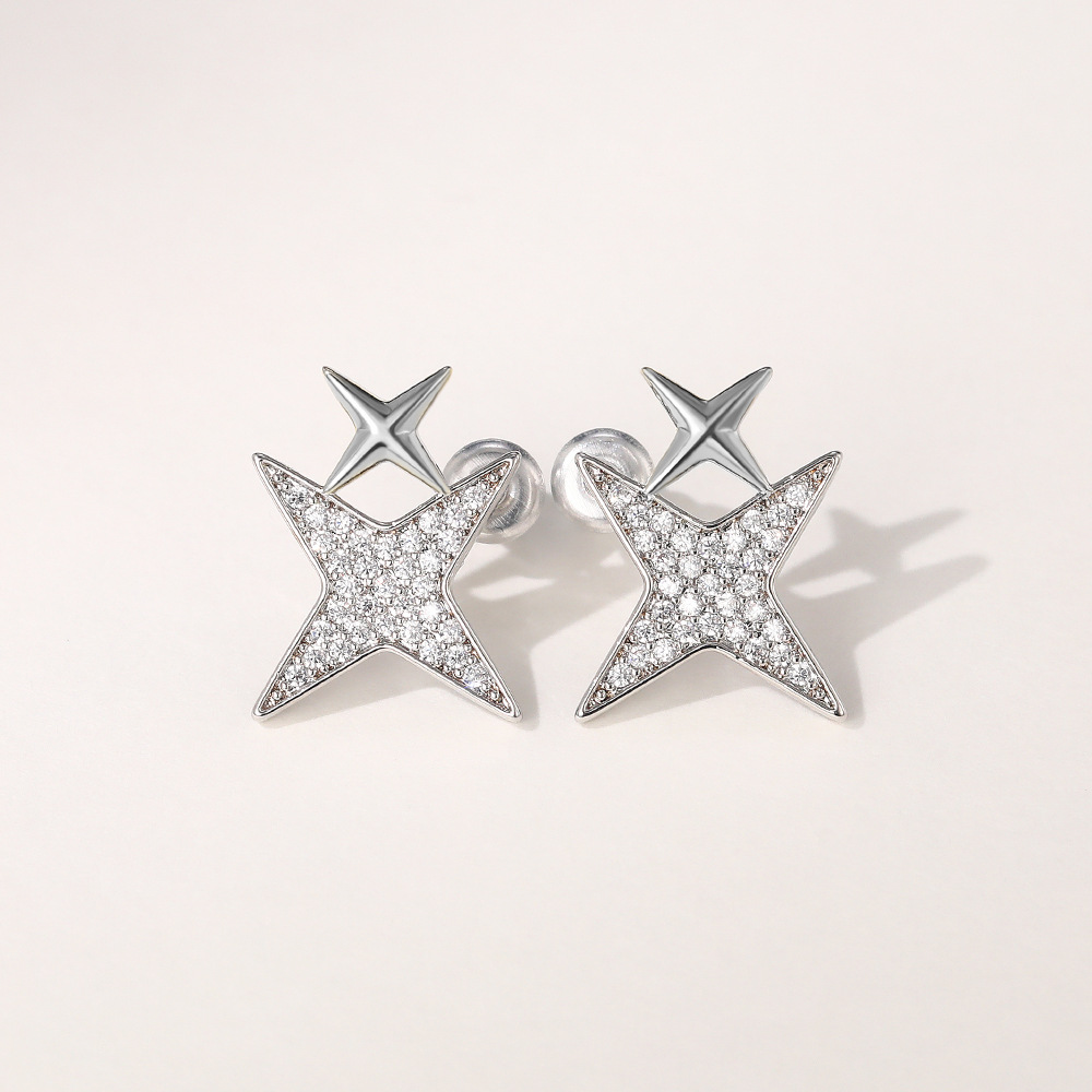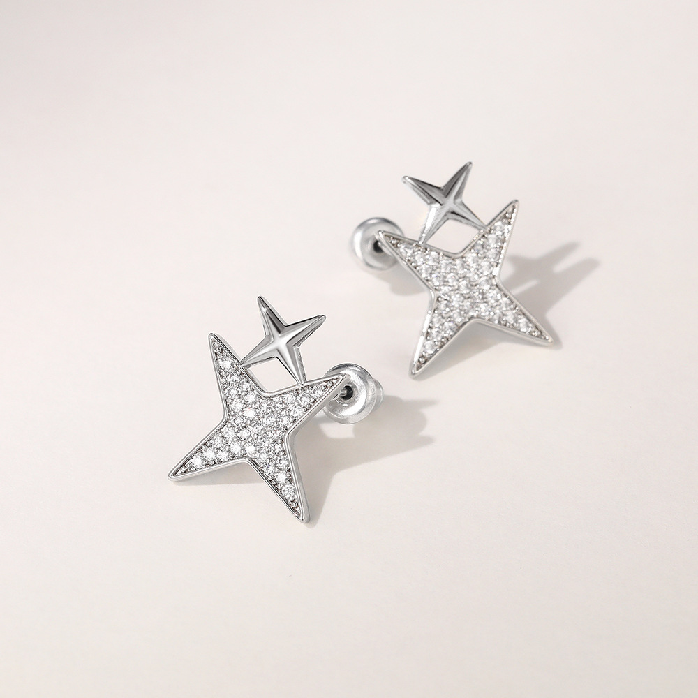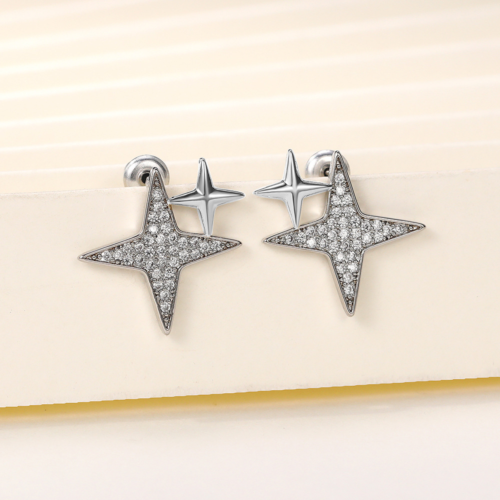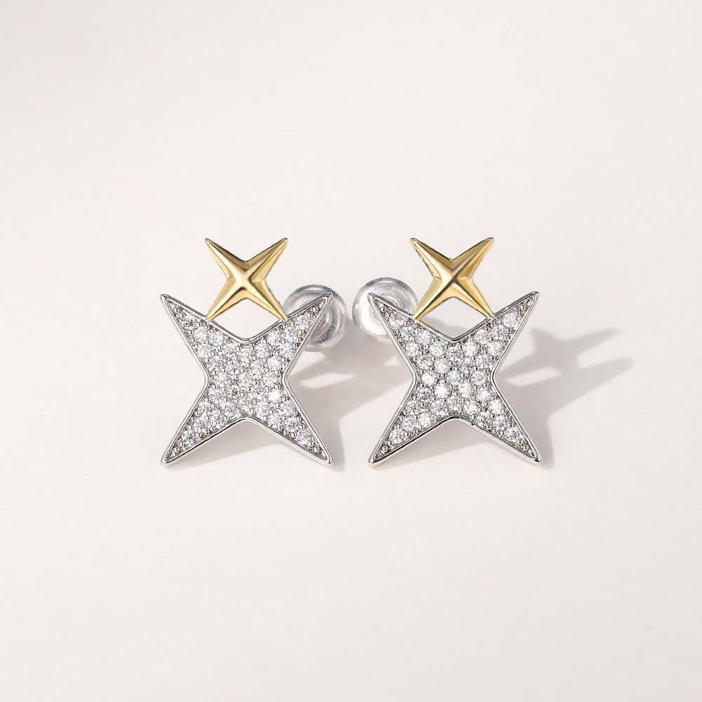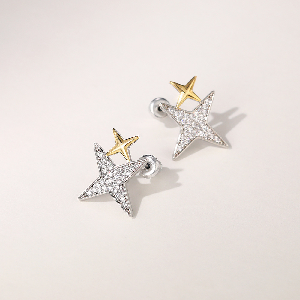 Korean temperament super sparkling star earrings for women exquisite small star-shaped zircon two-color earrings factory direct sales