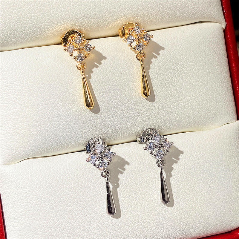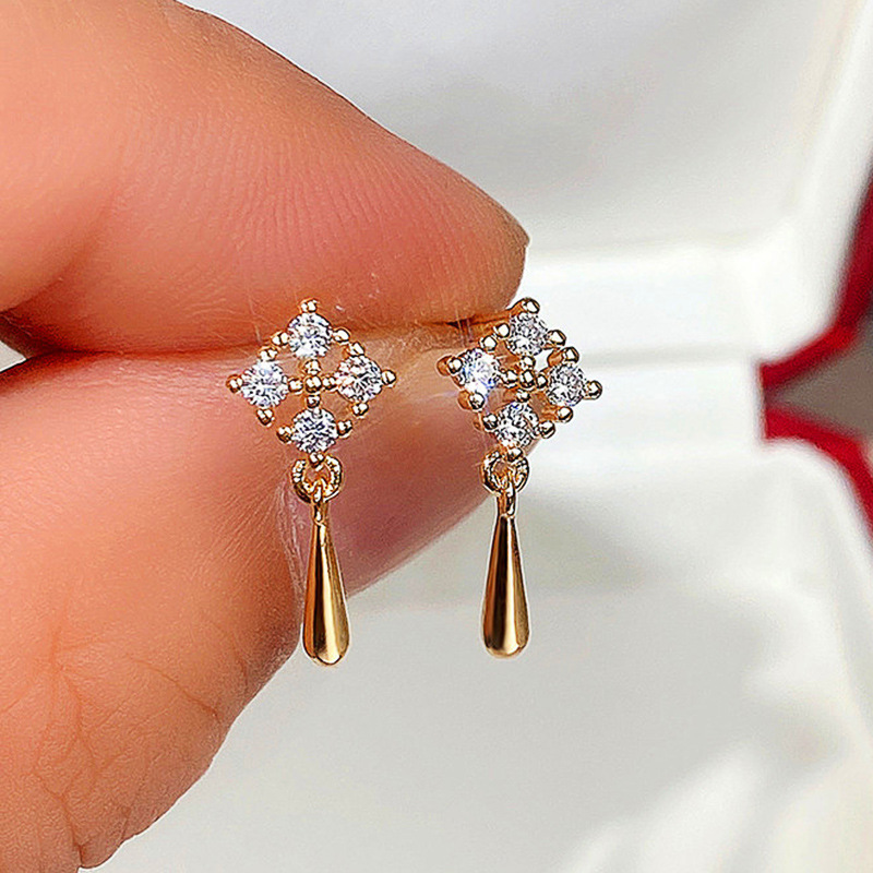 Korean version of diamond tassel earrings high-end light luxury mini zircon geometric earrings 2022 spring new