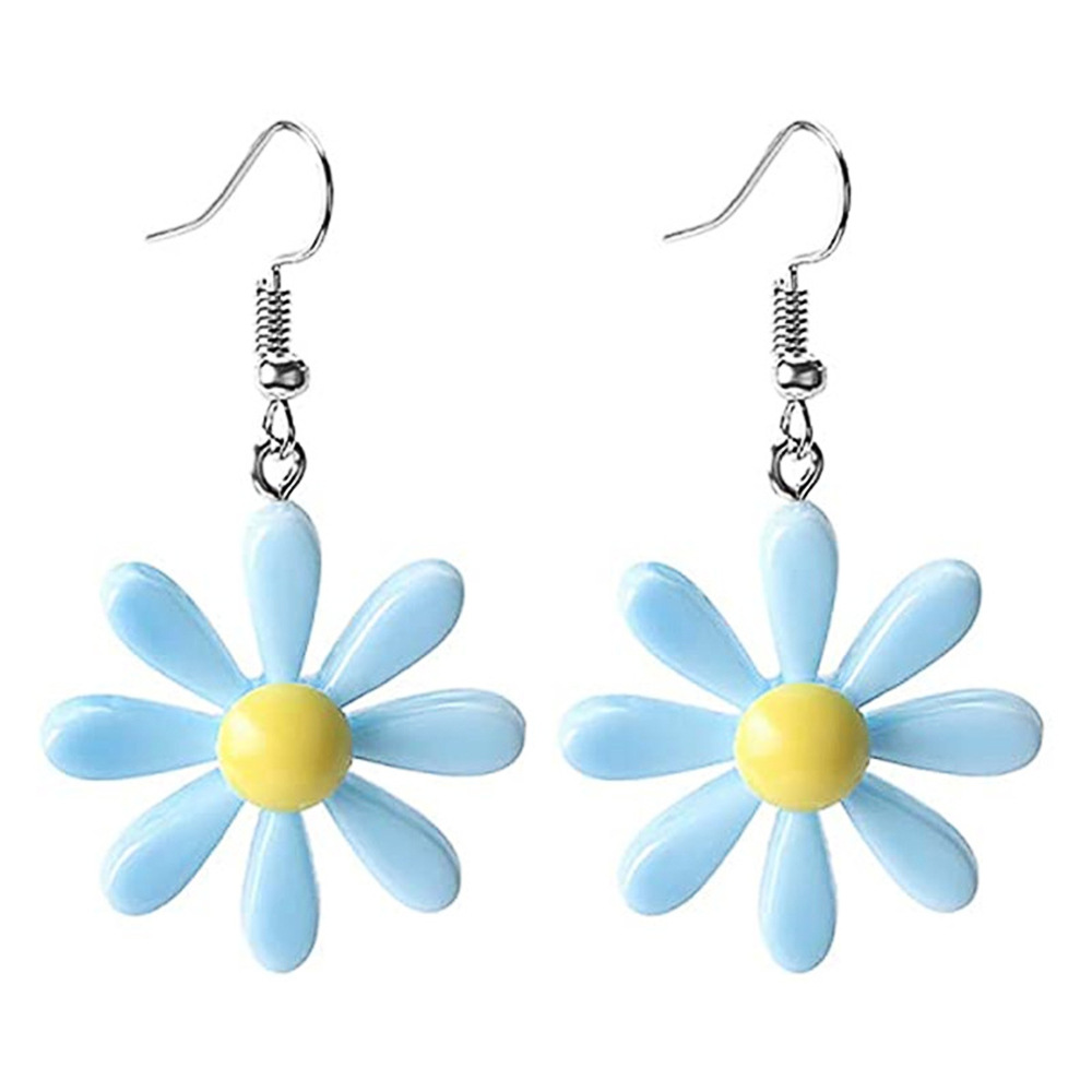 Korean version of HyunA style earrings, simple and fresh, epoxy daisy flower earrings, contrast color sunflower earrings