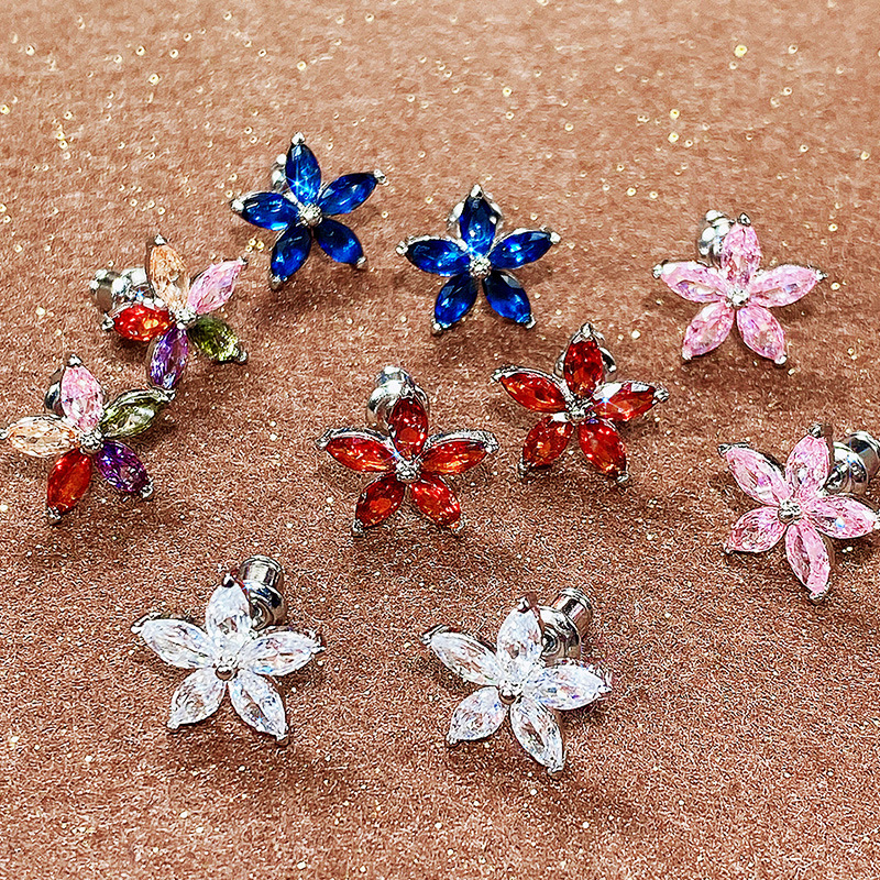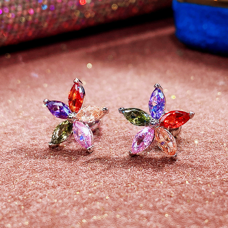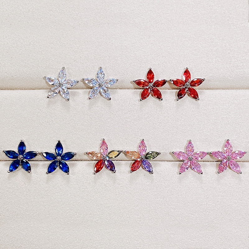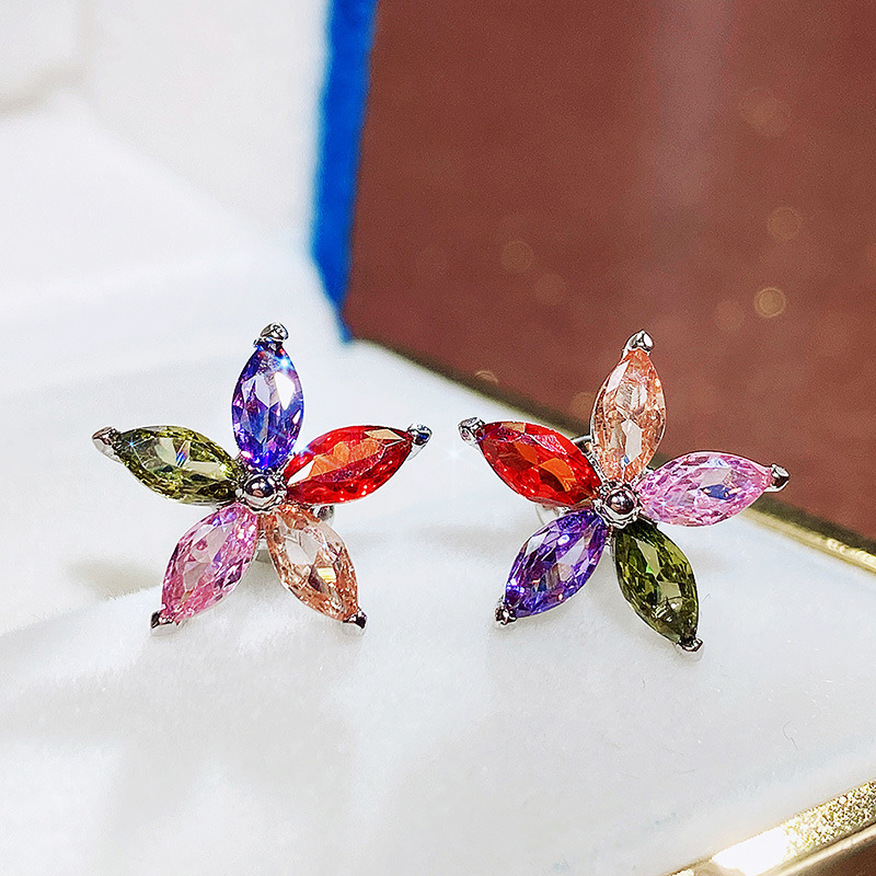 Korean version of the colorful star earrings sweet flower five-pointed star ladies earrings energetic girl student earrings