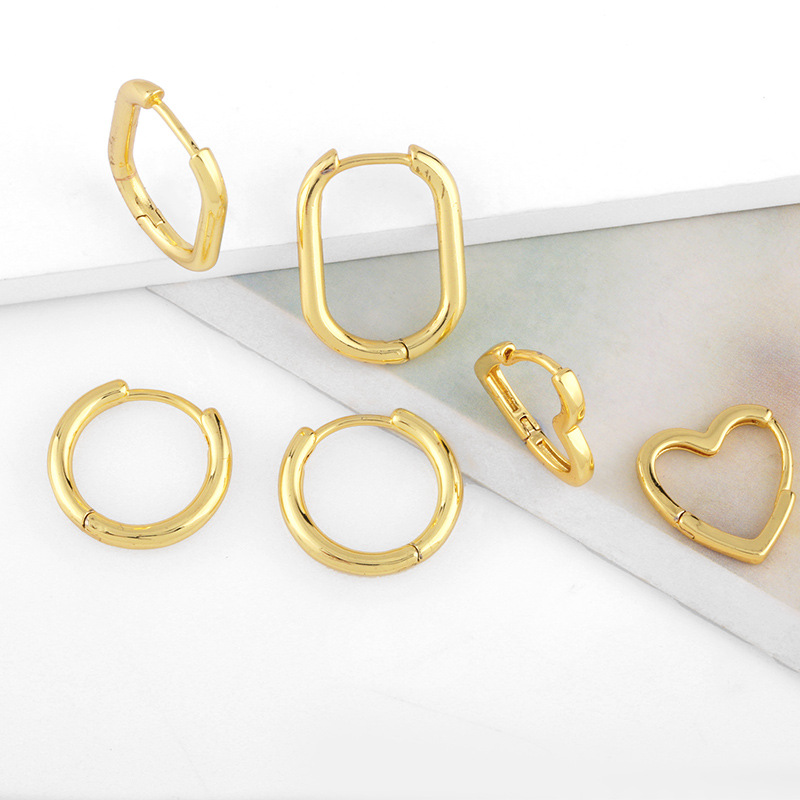 Korean version of the glossy heart earrings INS minimalist geometric oval ring female earrings earrings gold-plated retro earrings erw06
