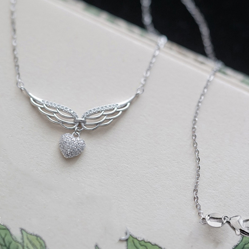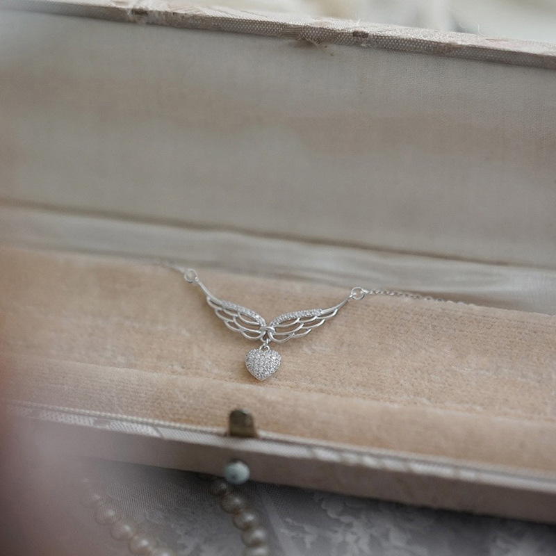 Korean version of the heart pendant female angel wings elegant lady necklace heart-shaped niche o-shaped chain