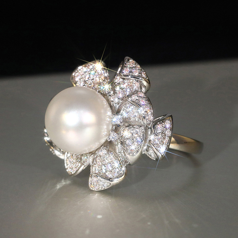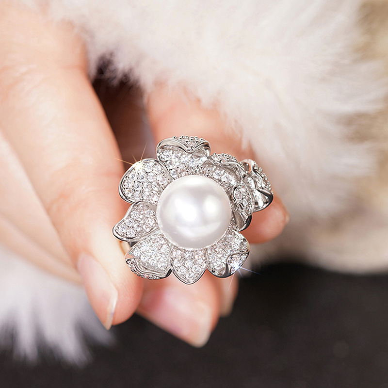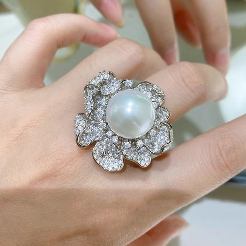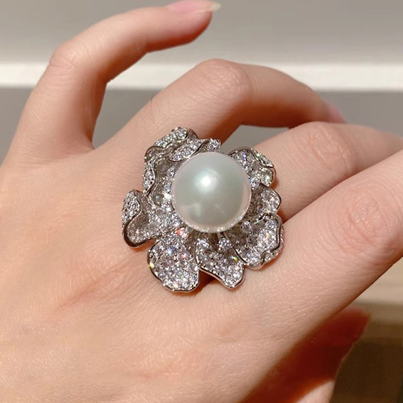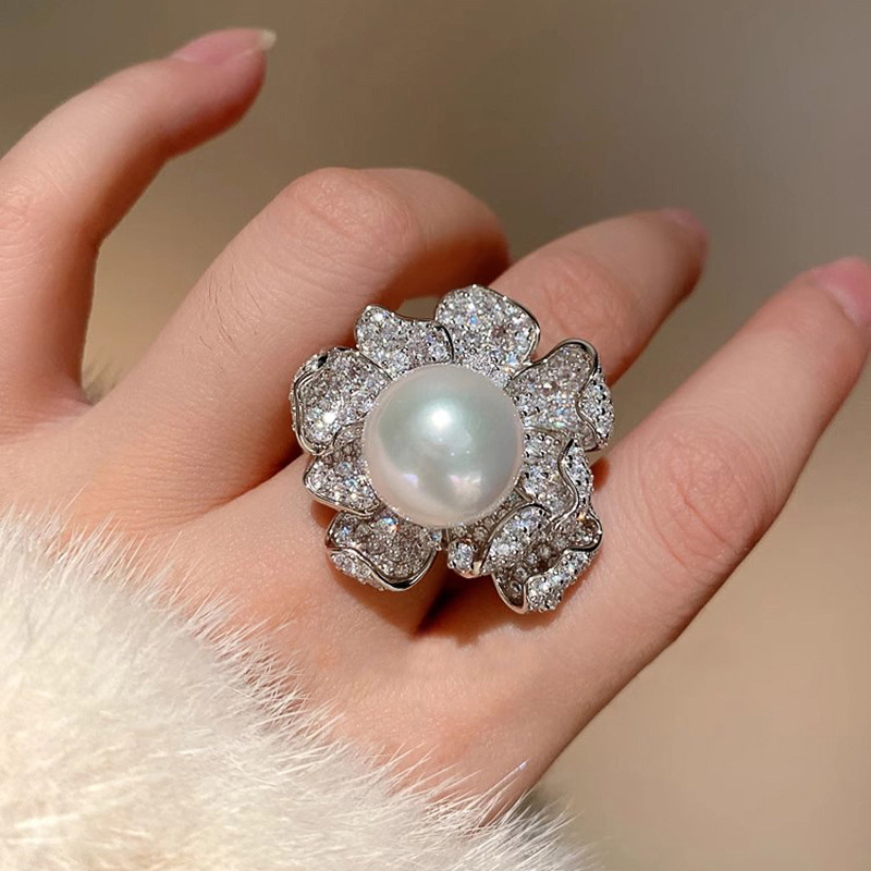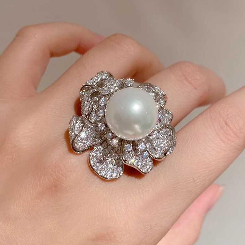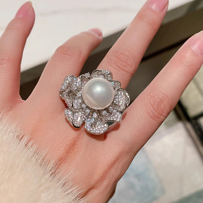 Korean version of Xiaoxiang light luxury exaggerated flower ring women's micro-inlaid zircon exquisite ring camellia jewelry