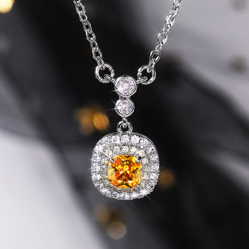 Kuaishou live broadcast hit all-match yellow diamond zircon pendant necklace European and American women's luxury clavicle chain
