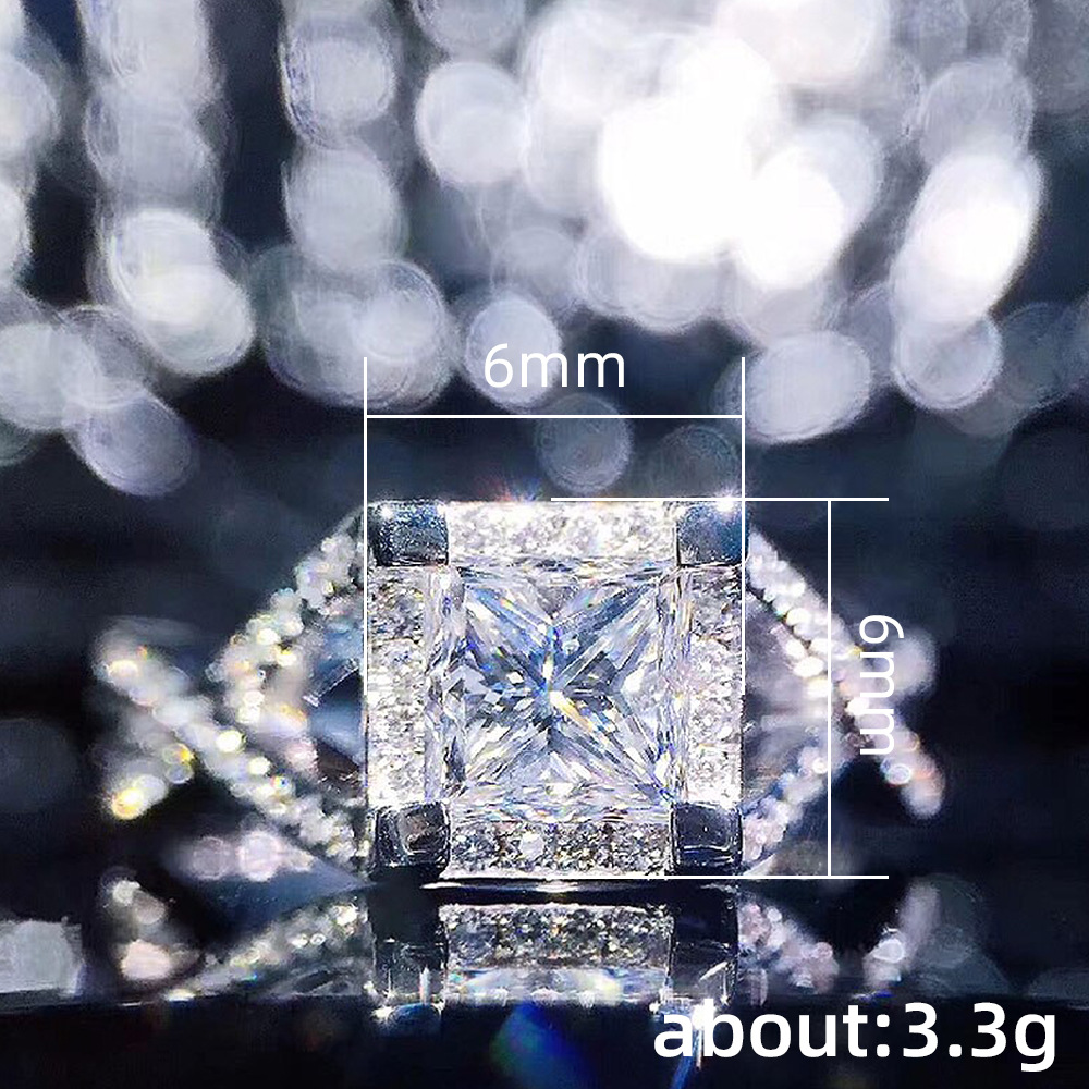Kuaishou live broadcast hot luxury micro-inlaid brilliant zircon princess diamond engagement ring X-shaped light luxury wedding ring for women