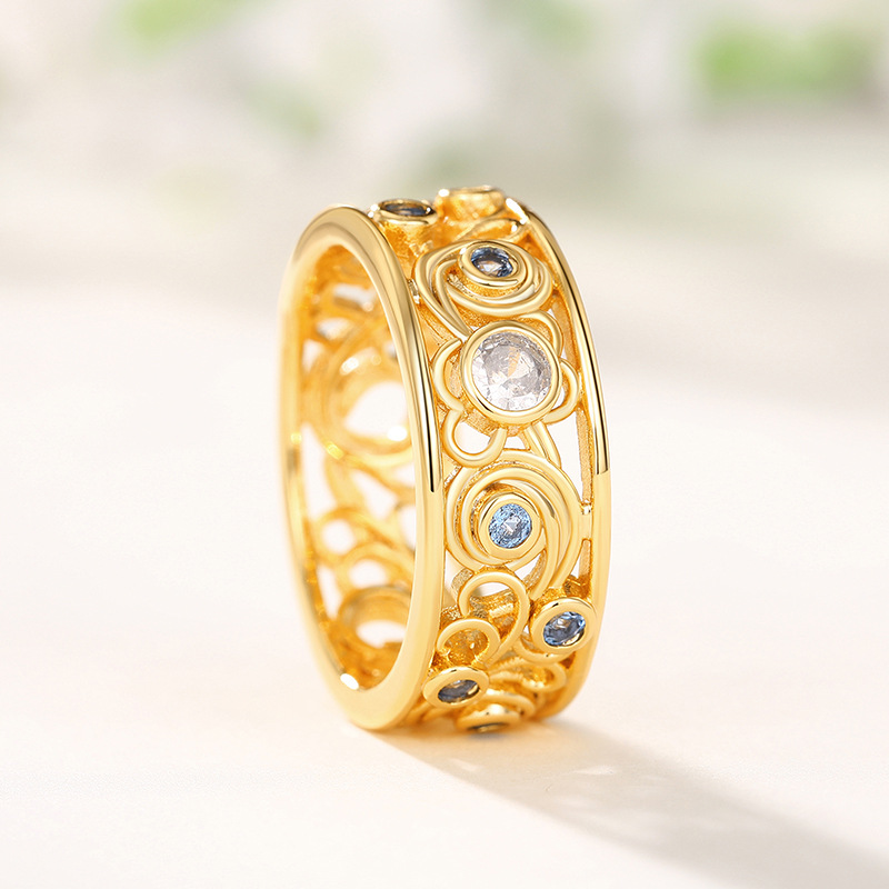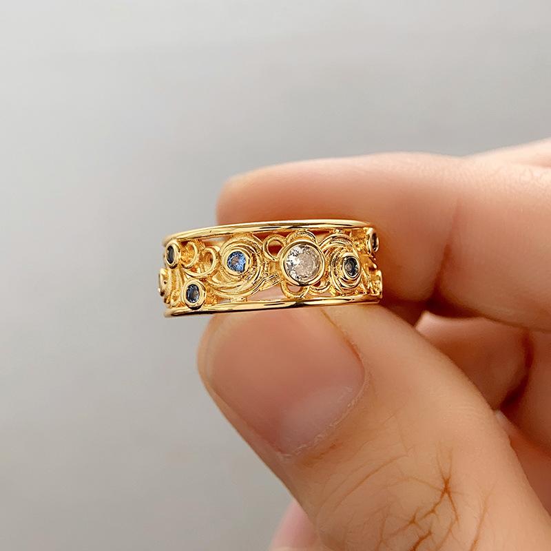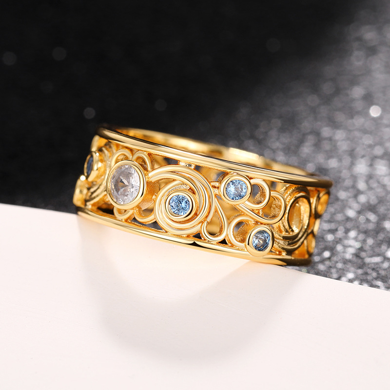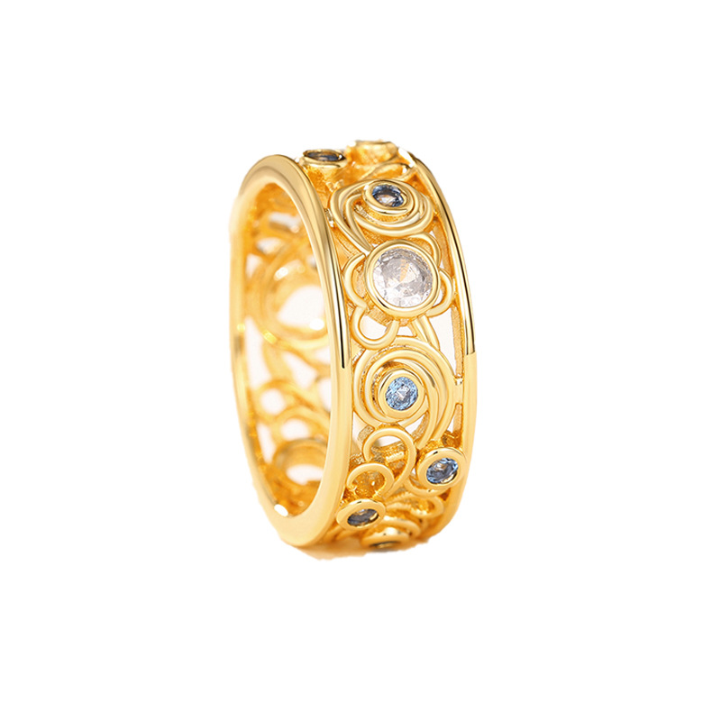 Kuaishou live broadcast of the same ring, palace style Van Gogh artwork twisted ring mermaid's tears