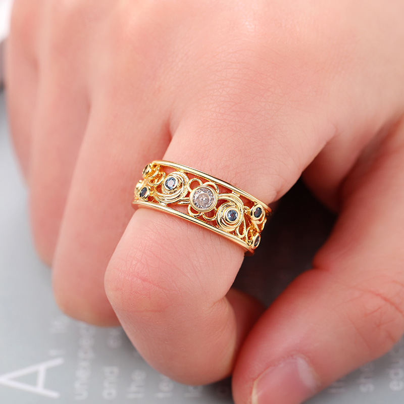 European and American luxury design ring fashionable temperament horse eye zircon ring multi-layer hollow design index finger ring