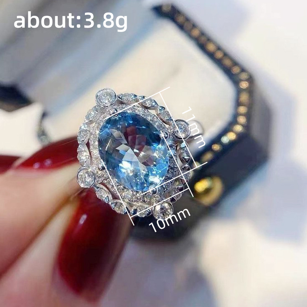 Kuaishou live broadcast welfare model light luxury sea blue zircon flower ring popular engagement ring for women