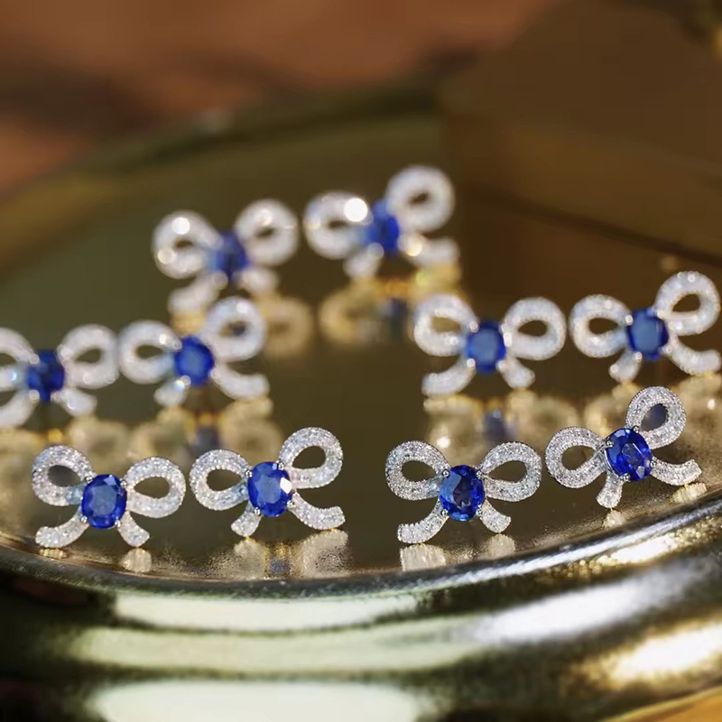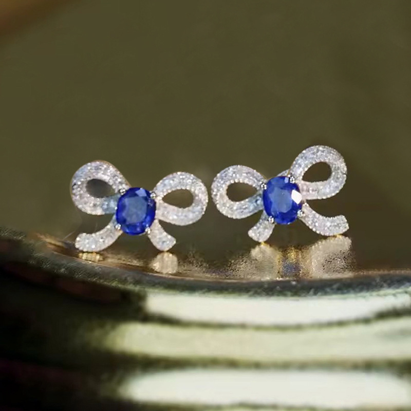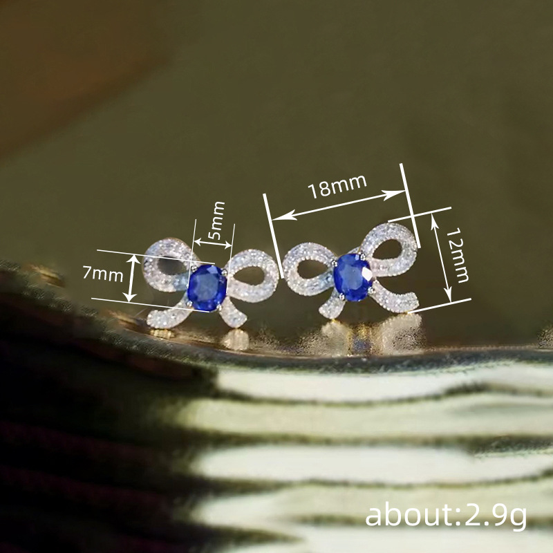 Lady lady exquisite bow earrings micro-inlaid zircon sparkling jewelry sweet temperament matching style