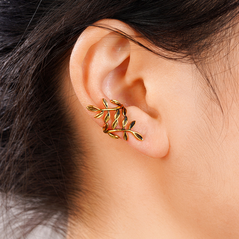 Leaf ear clip for women without piercings Korean simple fresh forest retro student ear bone clip