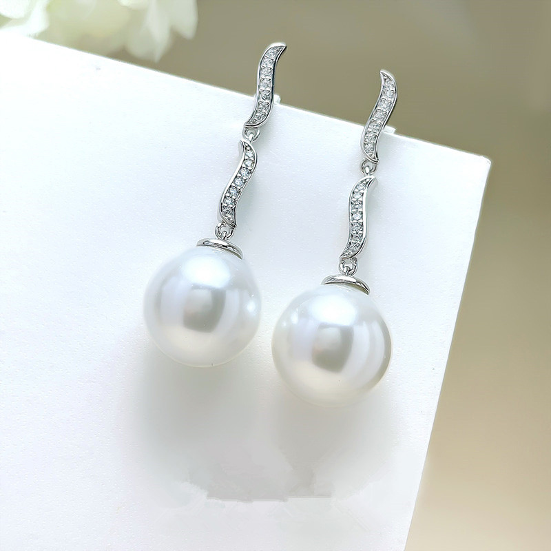 Light luxury celebrity style imitation mother-of-pearl earrings, elegant long exquisite bridal earrings, temperament female earrings