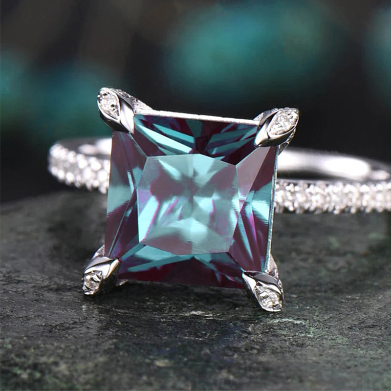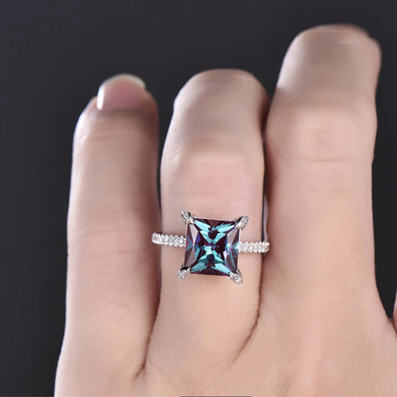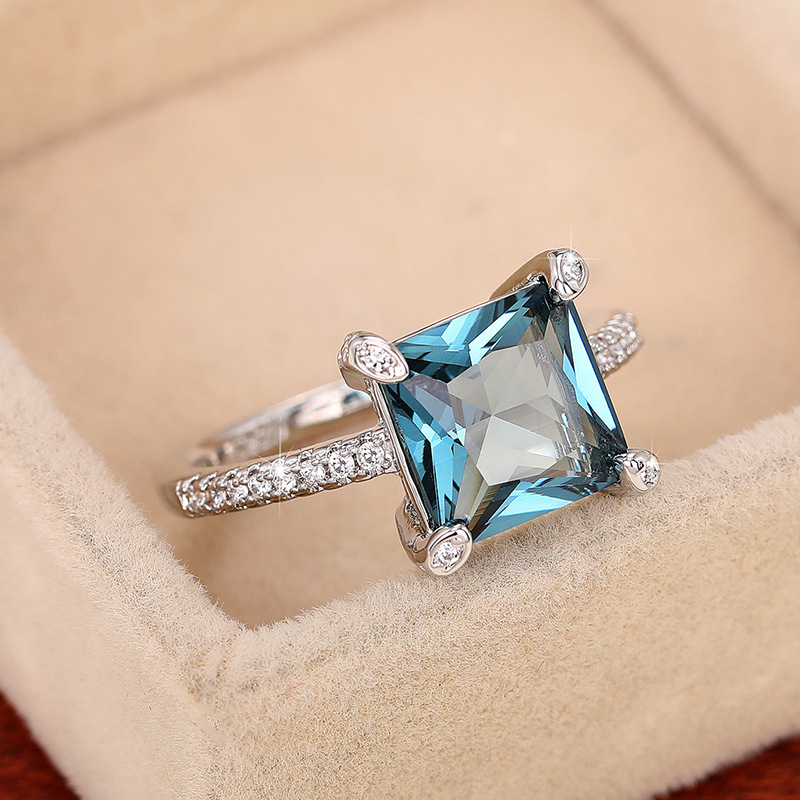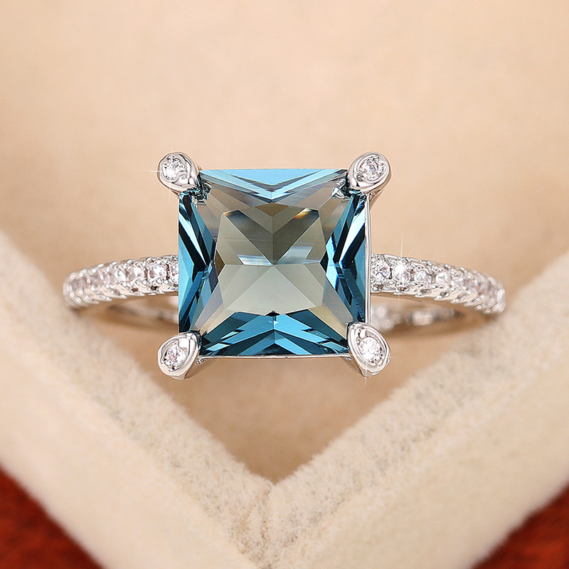 Hot selling new princess square ring European and American hot style inlaid zircon women's jewelry engagement proposal ring