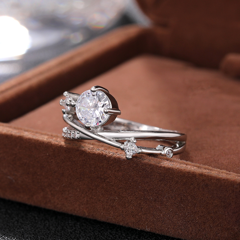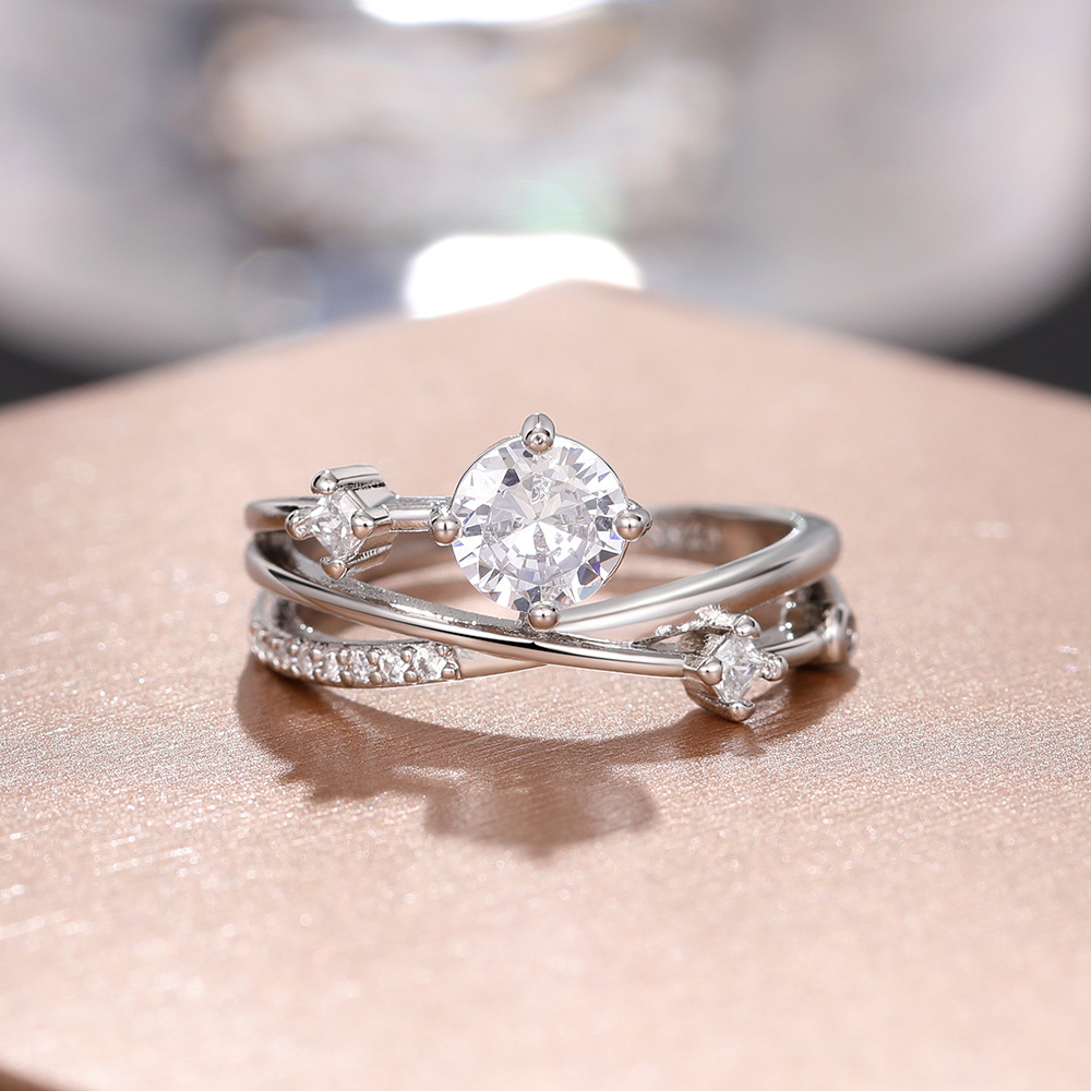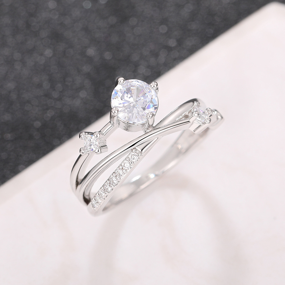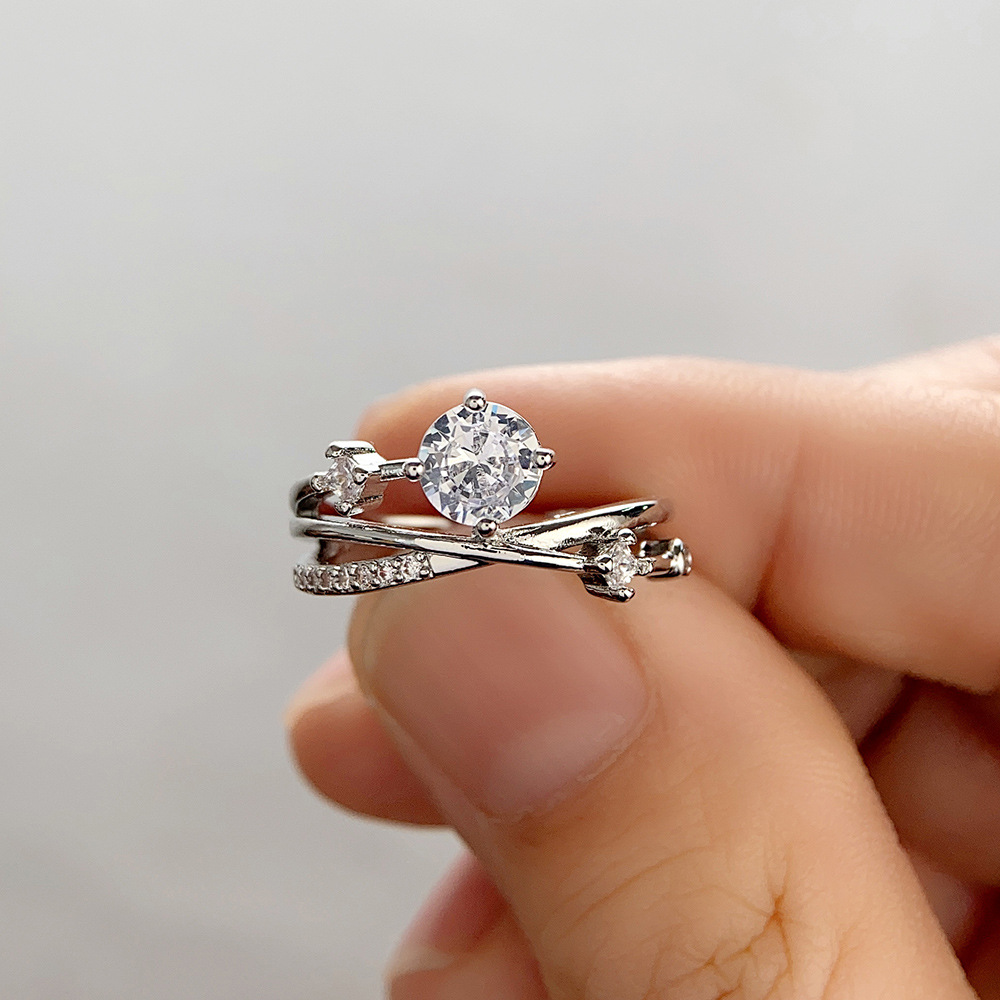 Micro-inlaid celebrity style classic all-match popular ring six-claw zircon wedding ring European and American style light luxury ring