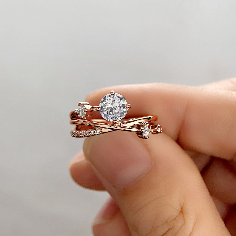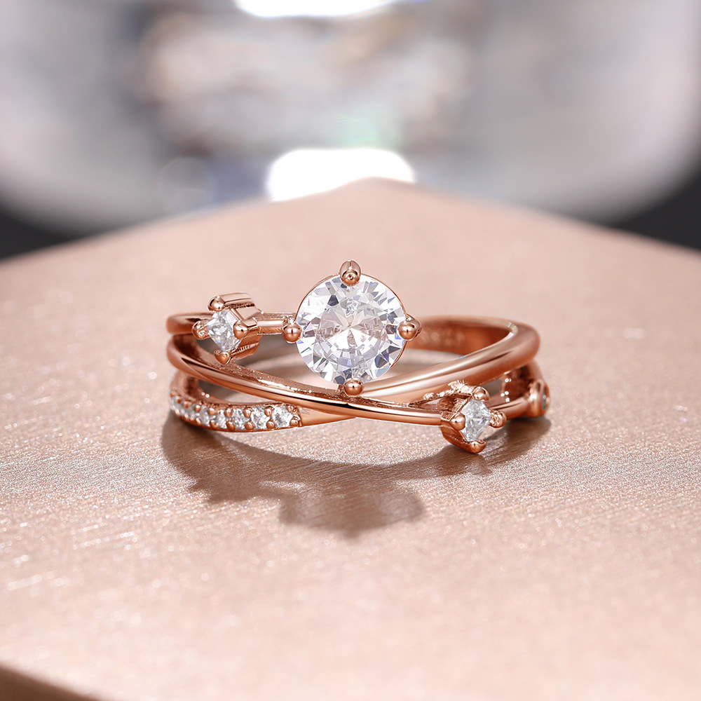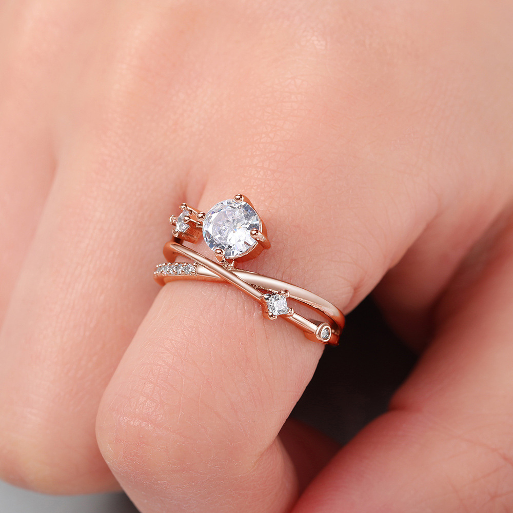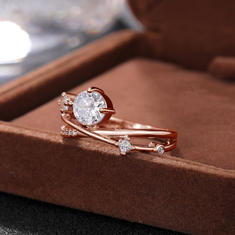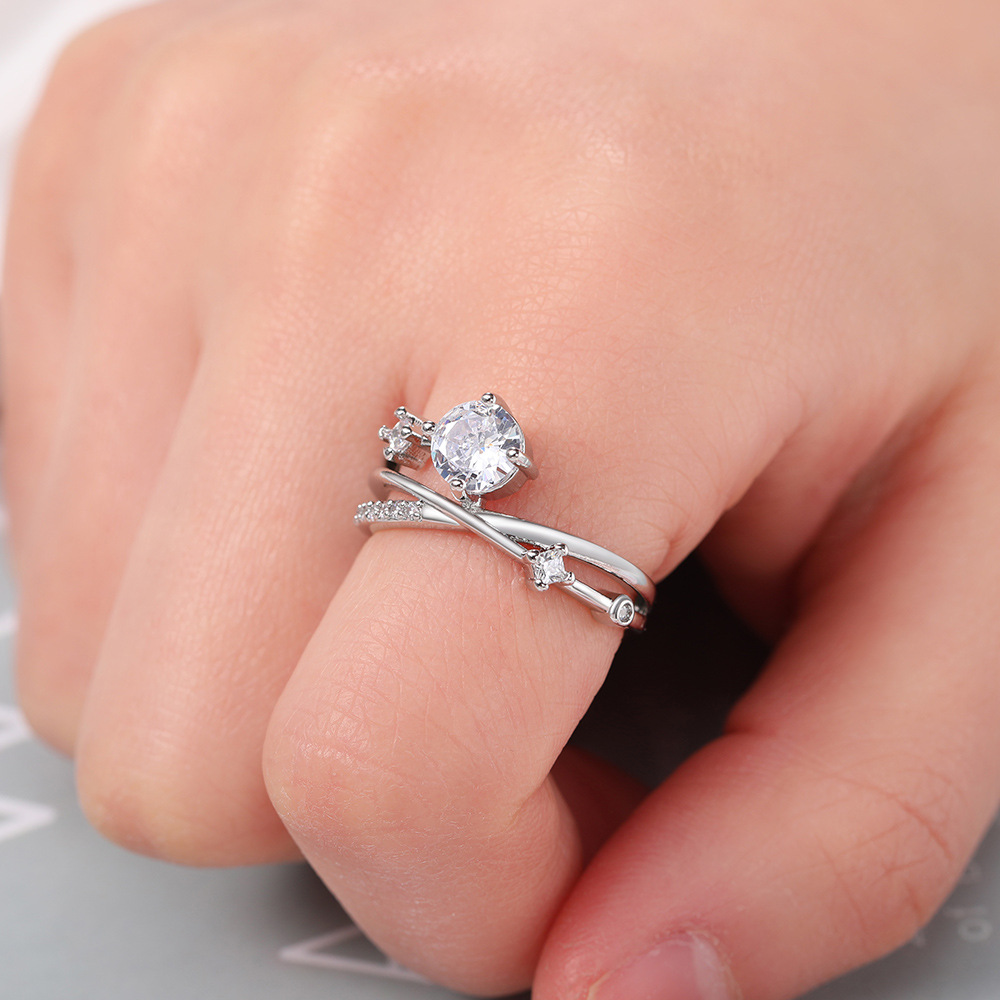 Micro-inlaid celebrity style classic all-match popular ring six-claw zircon wedding ring European and American style light luxury ring