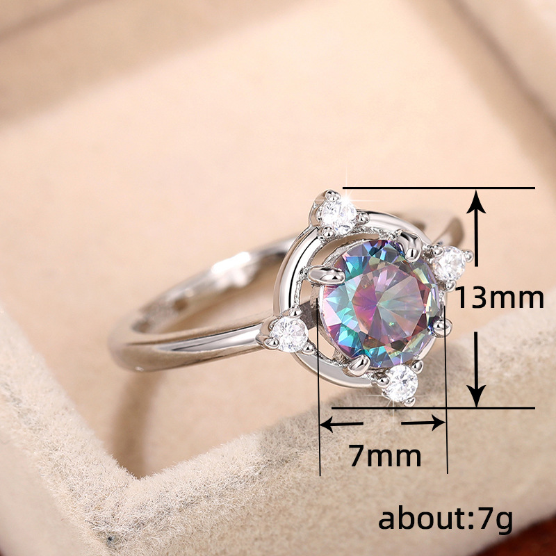 Light luxury gemstone index finger ring colorful gradient girls ring crown fresh and delicate princess socialite ring