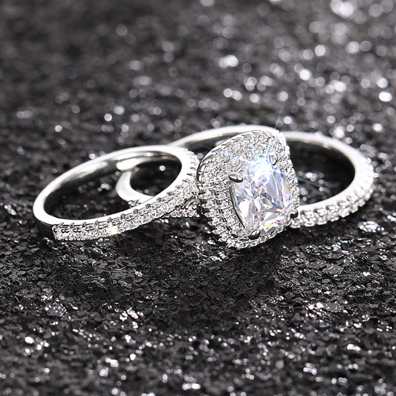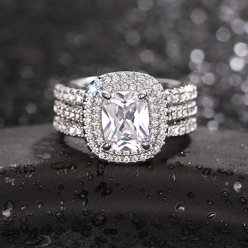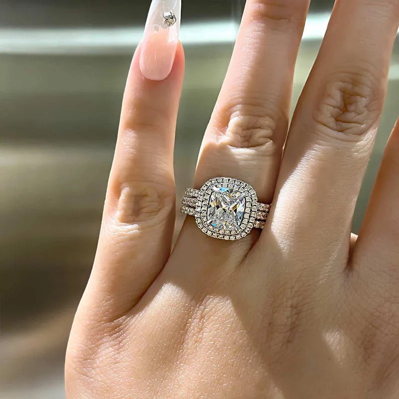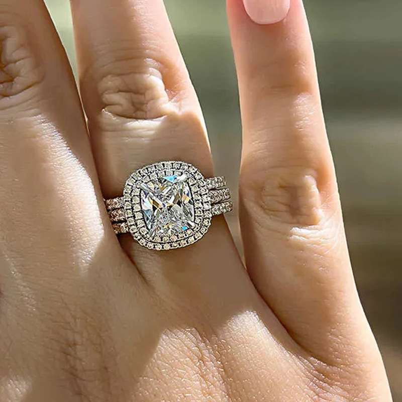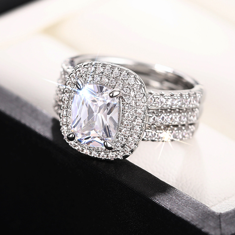 Light luxury geometric multi-layer ring square fat square fashion three-piece set female exquisite and elegant wedding style