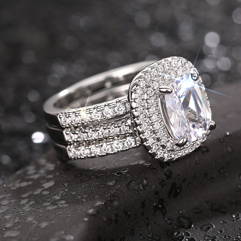 Classic four-claw imitation zircon micro-inlaid ring women's double row two-color twist arm ring engagement wedding ring women