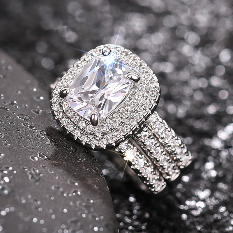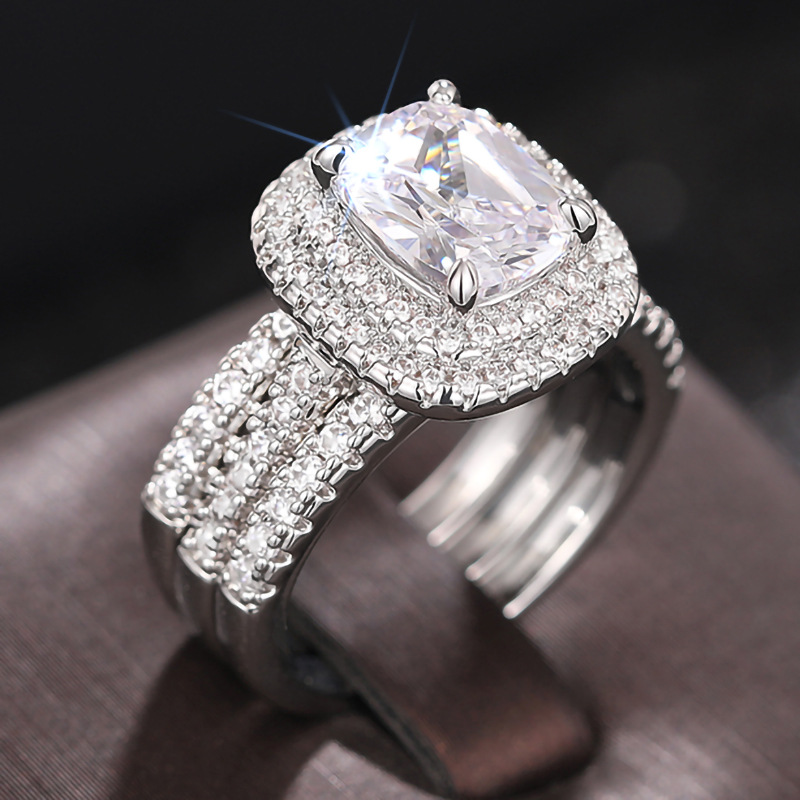 Hot selling new princess square ring European and American hot style inlaid zircon women's jewelry engagement proposal ring