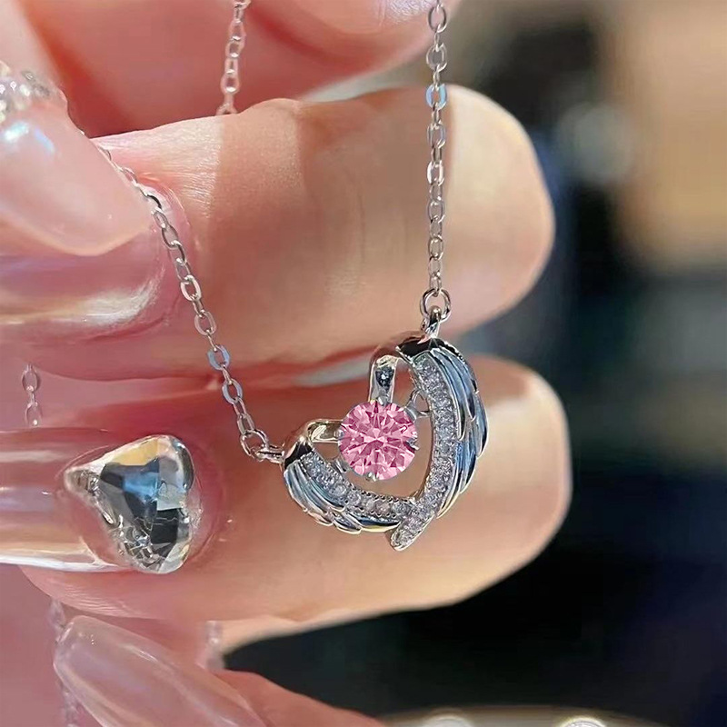Light luxury guardian wing necklace niche design feather love necklace hollow wings heart-shaped necklace