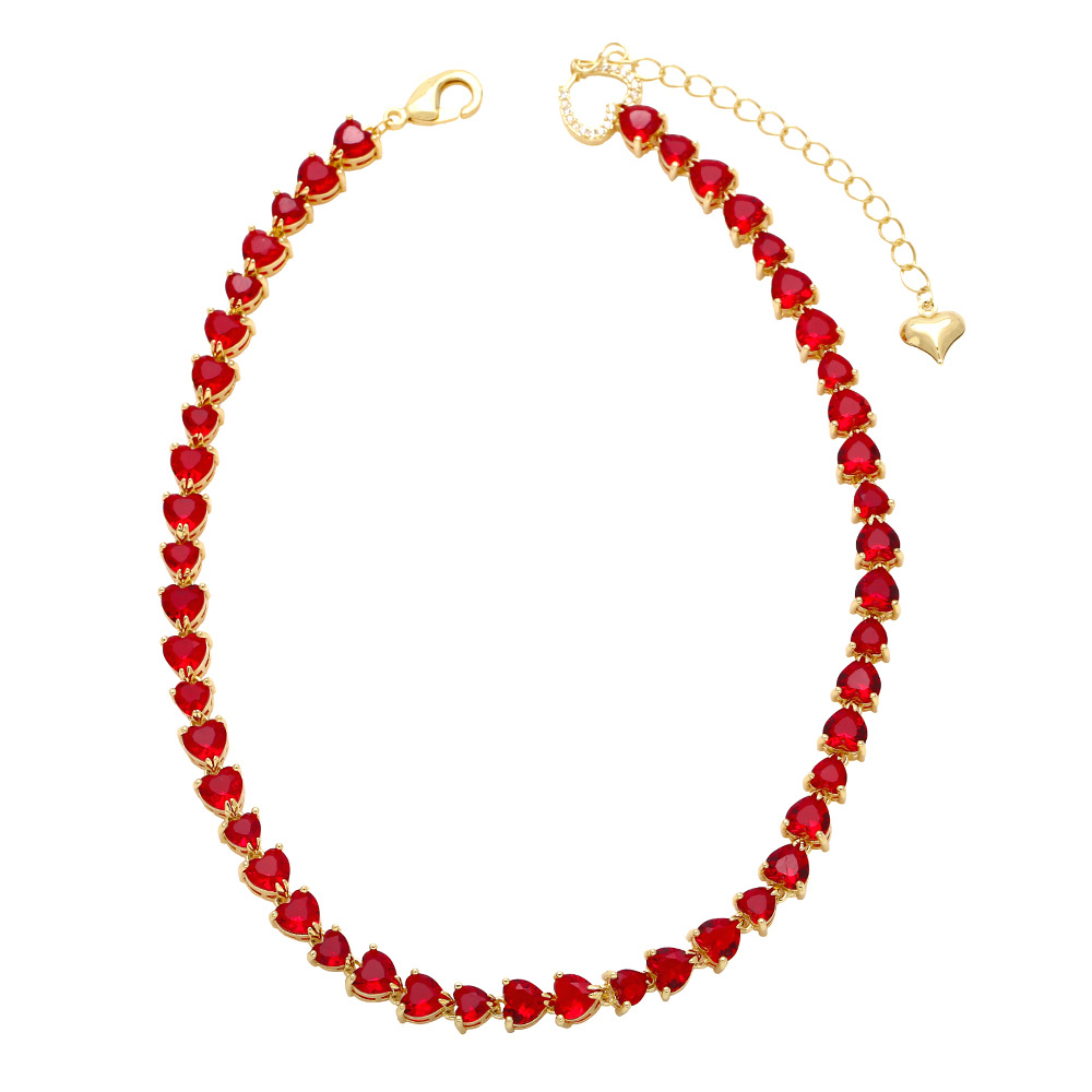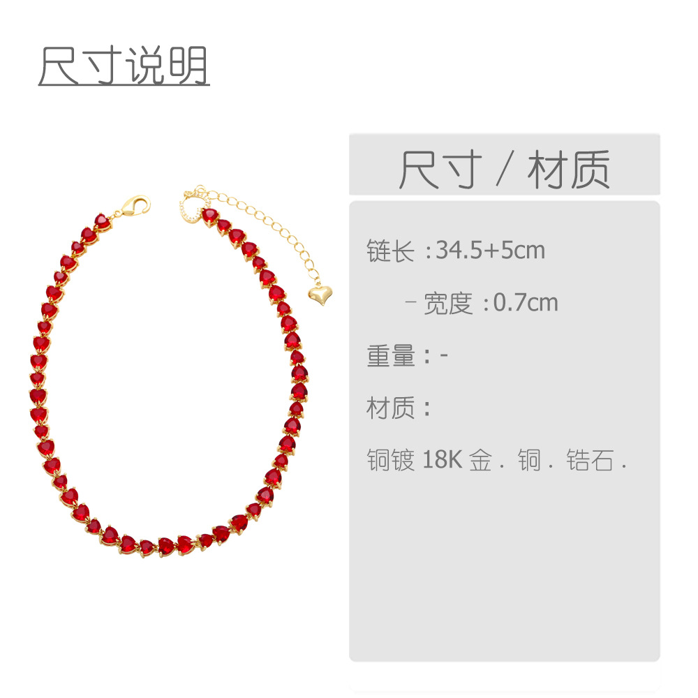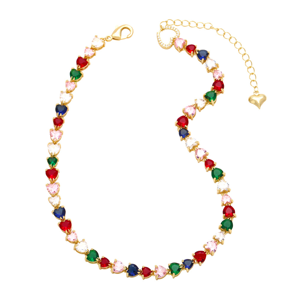Light luxury high-end retro color heart-shaped zircon clavicle necklace female European and American fashion love necklace necklace nkn83