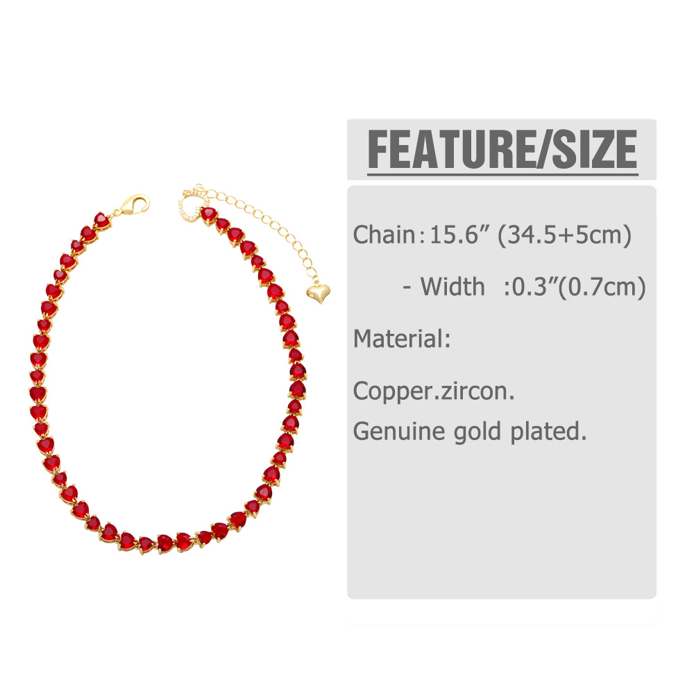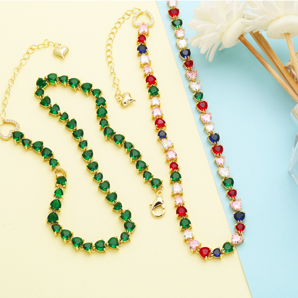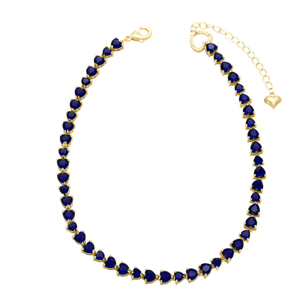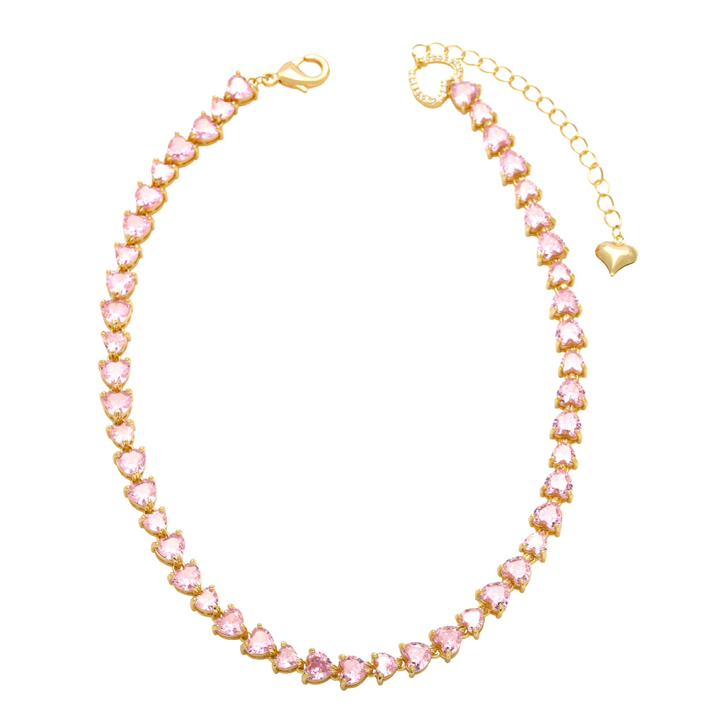 Light luxury high-end retro color heart-shaped zircon clavicle necklace female European and American fashion love necklace necklace nkn83